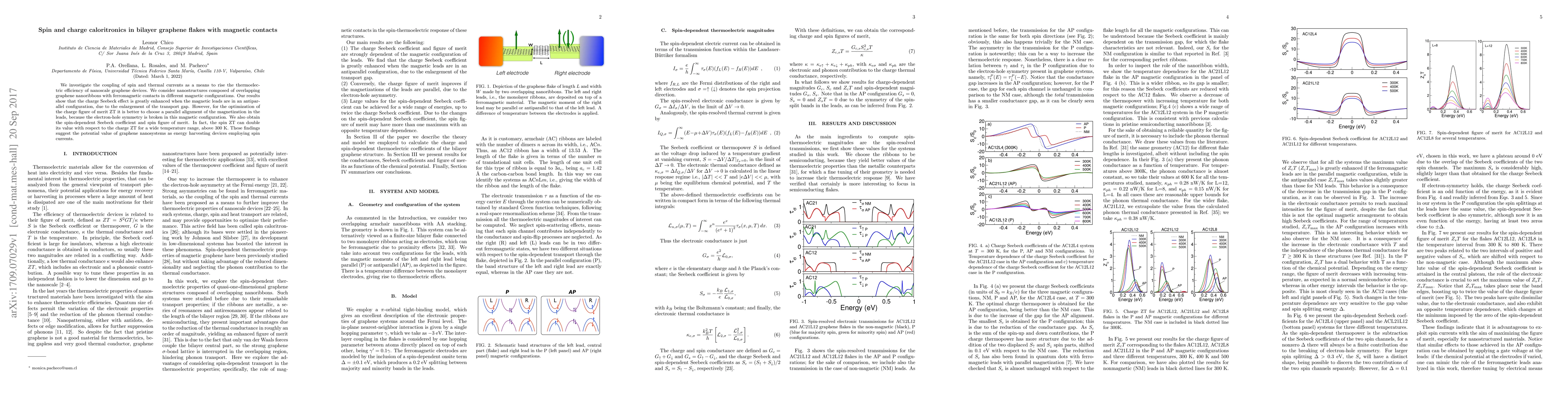 This paper explores the thermoelectric efficiency of bilayer graphene flakes using spin and charge caloritronics, finding that antiparallel magnetic configurations enhance the charge Seebeck effect. However, parallel alignment optimizes the charge figure of merit ZT, while spin currents can double the spin ZT value over 300 K, suggesting graphene nanosystems' potential for energy harvesting.