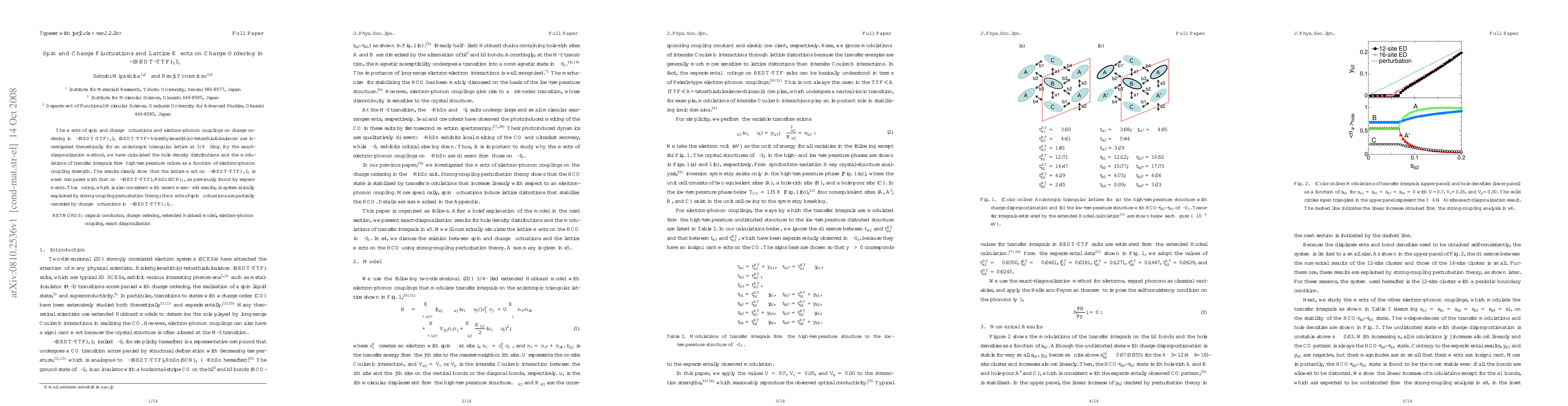 The paper investigates the influence of spin and charge fluctuations and electron-phonon couplings on charge ordering in \alpha-(BEDT-TTF)_2I_3 using exact-diagonalization, revealing that lattice effects are weaker in \alpha-(BEDT-TTF)_2I_3 compared to other BEDT-TTF compounds, explained by strong-coupling perturbation theory.