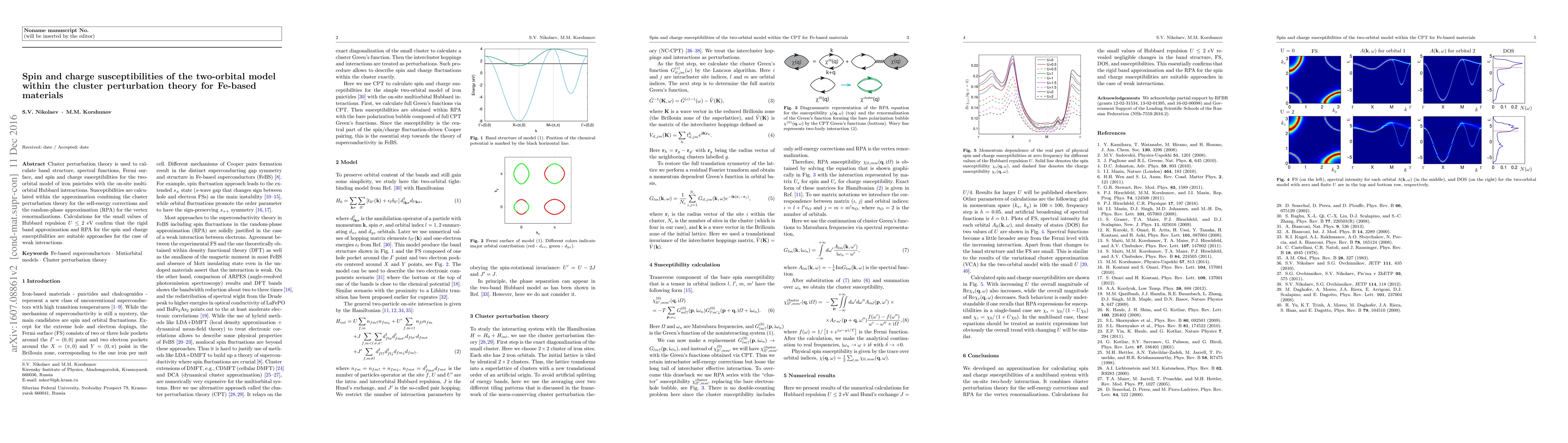 Summary: Cluster perturbation theory combined with random-phase approximation is used to study spin and charge susceptibilities in a two-orbital model of iron pnictides. For small Hubbard repulsion values, the rigid band approximation and RPA show suitable accuracy for weak interactions.