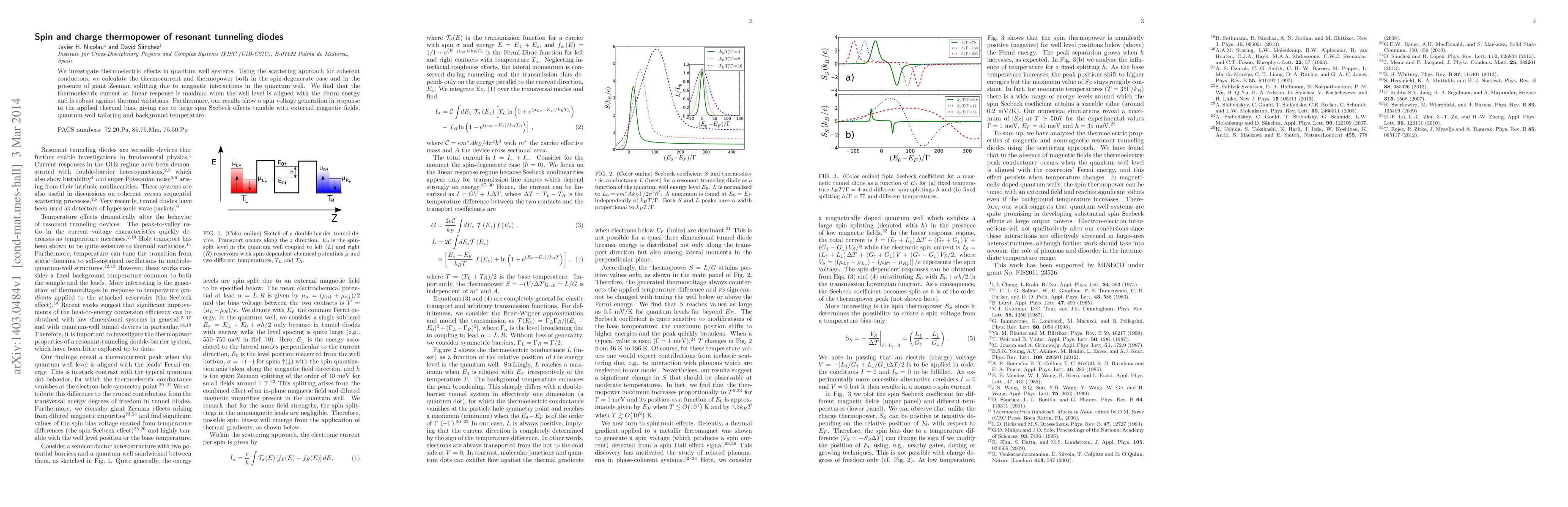 This research calculates thermoelectric effects in quantum well systems using scattering approach, finding maximal thermocurrent when well level aligns with Fermi energy. It also reveals robust spin voltage generation from thermal bias, leading to large spin Seebeck effects tunable by magnetic fields, well tailoring, and temperature.