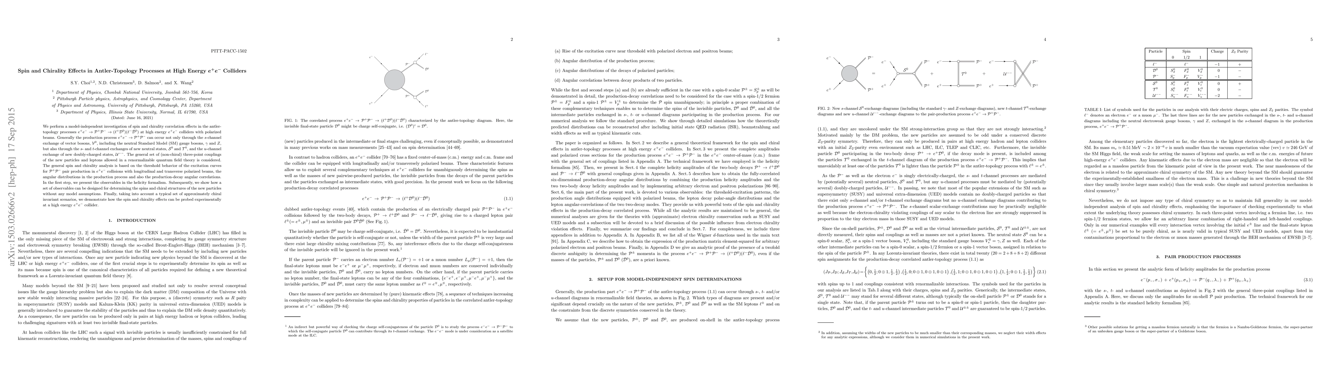 This research investigates spin and chirality effects in antler-topology processes at high-energy $e^+e^-$ colliders, without relying on specific models. It explores observables for determining new particle spins and chiral structures, demonstrating their experimental probing at such colliders using polarized beams and various angular analyses.