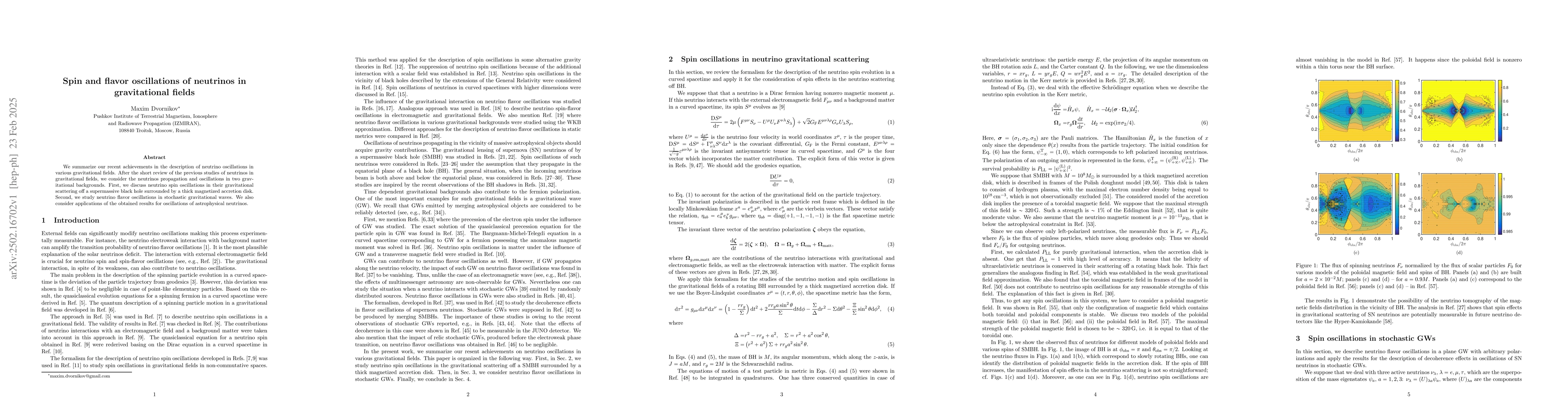 The paper presents detailed calculations and analysis of neutrino spin and flavor oscillations in complex gravitational backgrounds, including exact solutions for neutrino motion in Kerr metric and contributions of gravitational and magnetic fields to neutrino Hamiltonians.