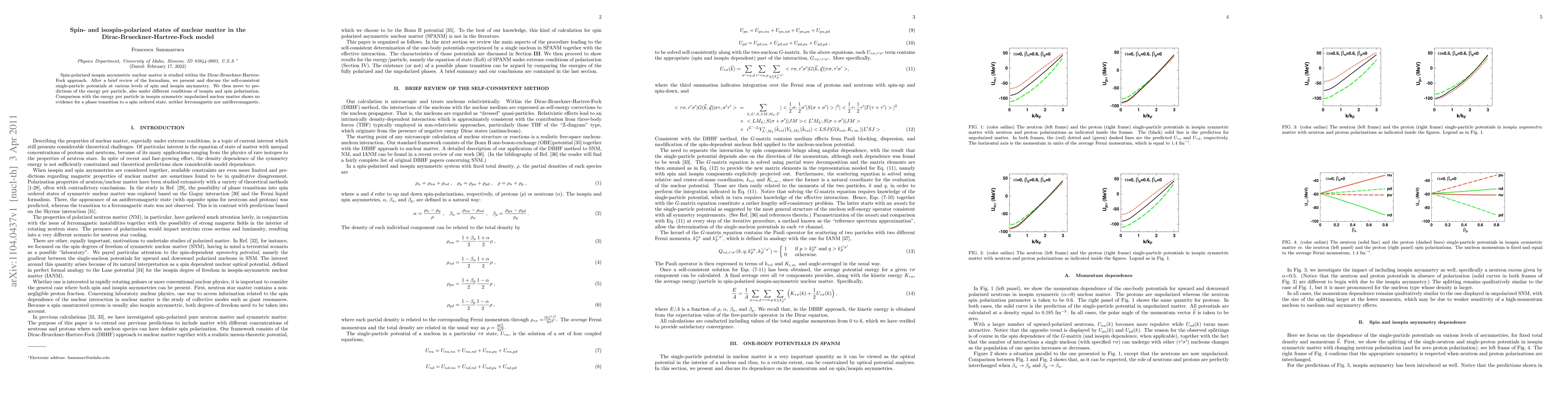 This paper investigates spin-polarized, isospin-asymmetric nuclear matter using the Dirac-Brueckner-Hartree-Fock model, finding self-consistent single-particle potentials under various spin and isospin asymmetries. It concludes that there is no evidence for a phase transition to a spin-ordered state in the studied conditions.