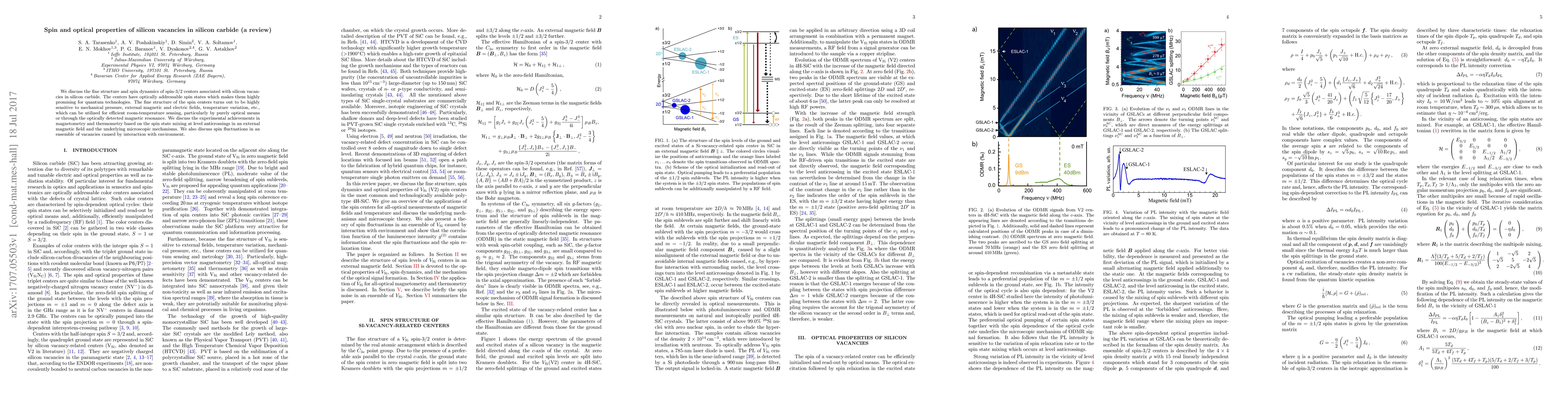 This paper reviews the fine structure and spin dynamics of silicon vacancies in silicon carbide, highlighting their potential for quantum technologies due to optically addressable spin states. The study emphasizes the sensitivity of these spin centers to external factors, which can be exploited for efficient room-temperature sensing and optical detection methods.