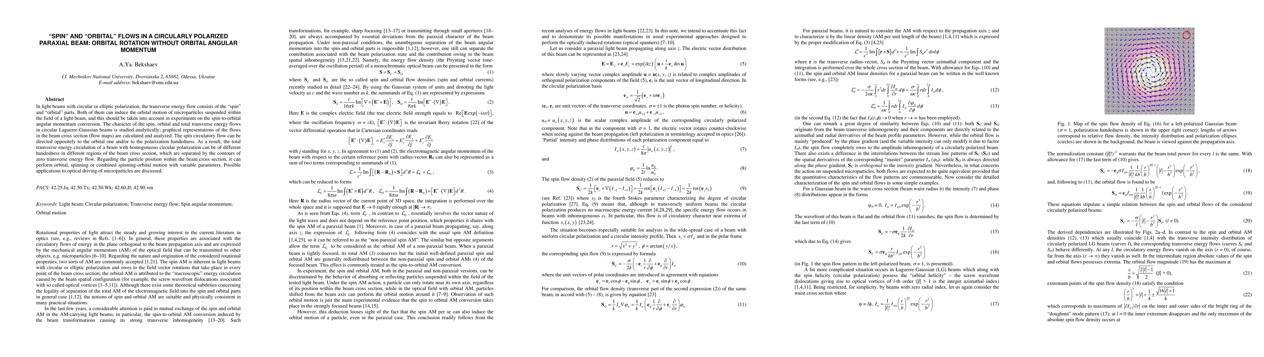 This paper investigates the "spin" and "orbital" transverse energy flows in circularly polarized Laguerre-Gaussian beams, revealing that the spin flow can oppose the orbital flow, leading to complex total transverse energy circulation patterns. Applications to optical manipulation of microparticles are also considered.
