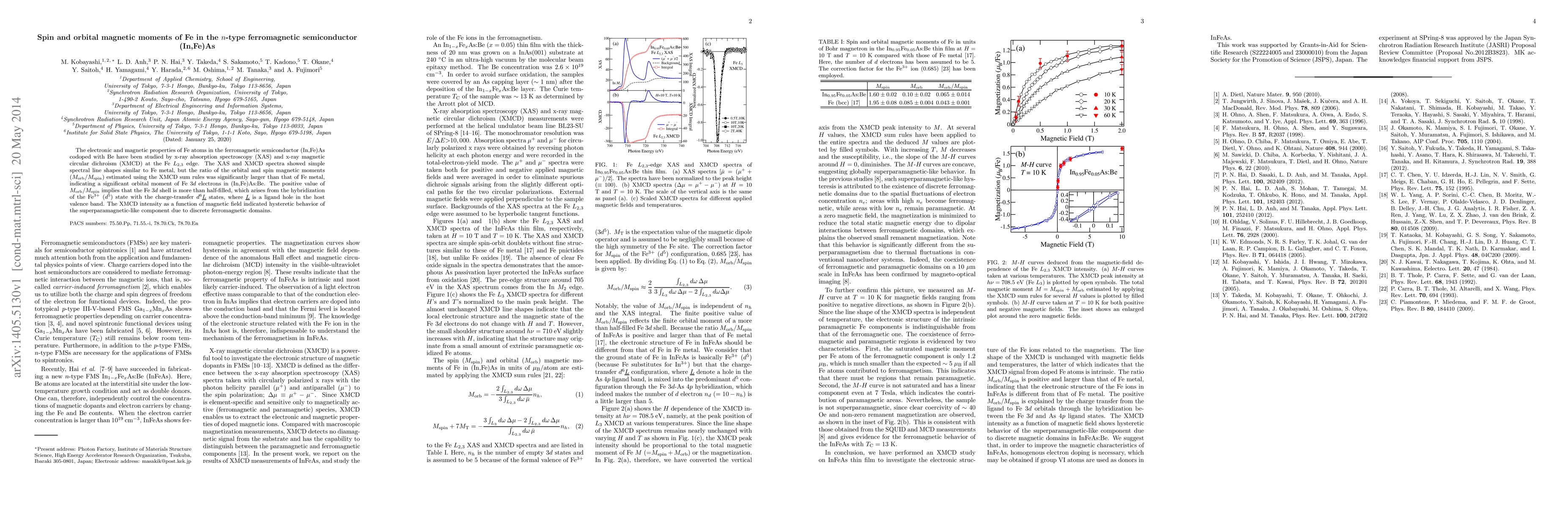 X-ray absorption spectroscopy and magnetic circular dichroism revealed that Fe atoms in the ferromagnetic semiconductor (In,Fe)As:Be have a significantly larger orbital to spin magnetic moment ratio than Fe metal, suggesting a substantial orbital moment due to Fe 3d electron hybridization with host valence band. Hysteretic behavior in magnetic field indicates superparamagnetic-like ferromagnetic domains.