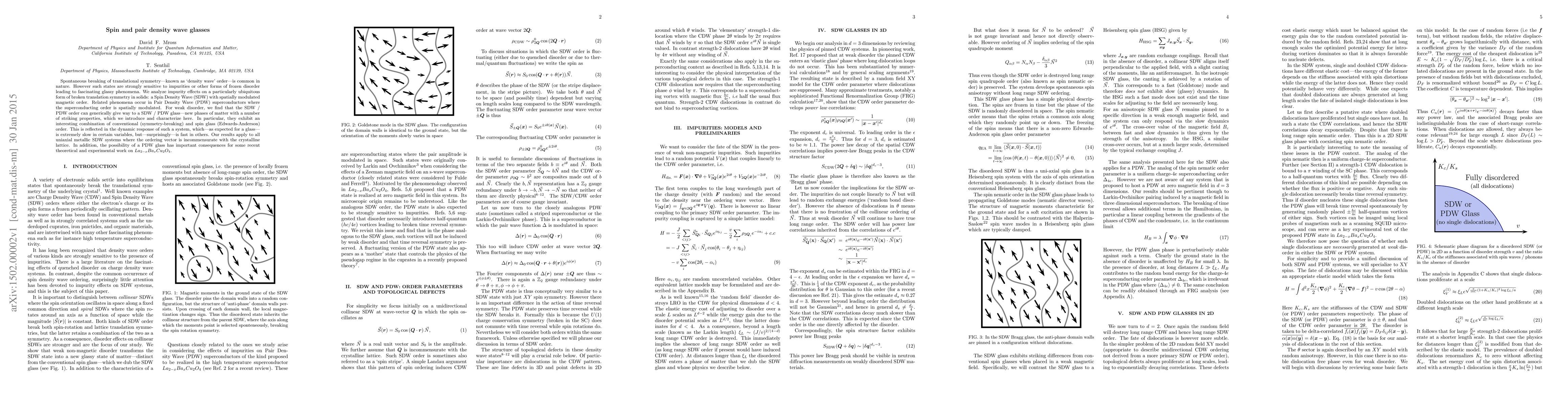 Spontaneous breaking of translational symmetry---known as `density wave' order---is common in nature. However such states are strongly sensitive to impurities or other forms of frozen disorder leading to fascinating glassy phenomena. We analyze impurity effects on a particularly ubiquitous form of broken translation symmetry in solids: a Spin Density Wave (SDW) with spatially modulated magnetic order. Related phenomena occur in Pair Density Wave (PDW) superconductors where the superconducting order is spatially modulated. For weak disorder, we find that the SDW / PDW order can generically give way to a SDW / PDW glass---new phases of matter with a number of striking properties, which we introduce and characterize here. In particular, they exhibit an interesting combination of conventional (symmetry-breaking) and spin glass (Edwards-Anderson) order. This is reflected in the dynamic response of such a system, which---as expected for a glass---is extremely slow in certain variables, but---surprisingly---is fast in others. Our results apply to all uniaxial metallic SDW systems where the ordering vector is incommensurate with the crystalline lattice. In addition, the possibility of a PDW glass has important consequences for some recent theoretical and experimental work on $La_{2-x}Ba_xCu_2O_4$.