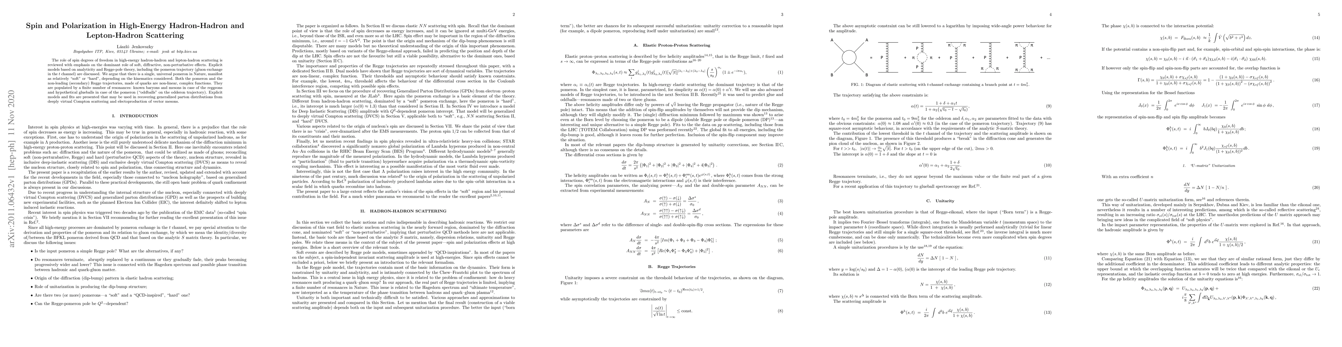 The role of spin degrees of freedom in high-energy hadron-hadron and lepton-hadron scattering is reviewed with emphasis on the dominant role of soft, diffractive, non-perturbative effects. Explicit models based on analyticity and Regge-pole theory, including the pomeron trajectory (gluon exchange in the $t$ channel) are discussed. We argue that there is a single, universal pomeron in Nature, manifest as relatively "soft" or "hard", depending on the kinematics considered. Regge trajectories are non-linear, complex functions, predicting a finite number of resonances. Explicit models and fits are presented that may be used in recovering generalized parton distributions from deeply virtual Compton scattering and electoproduction of vector mesons.
