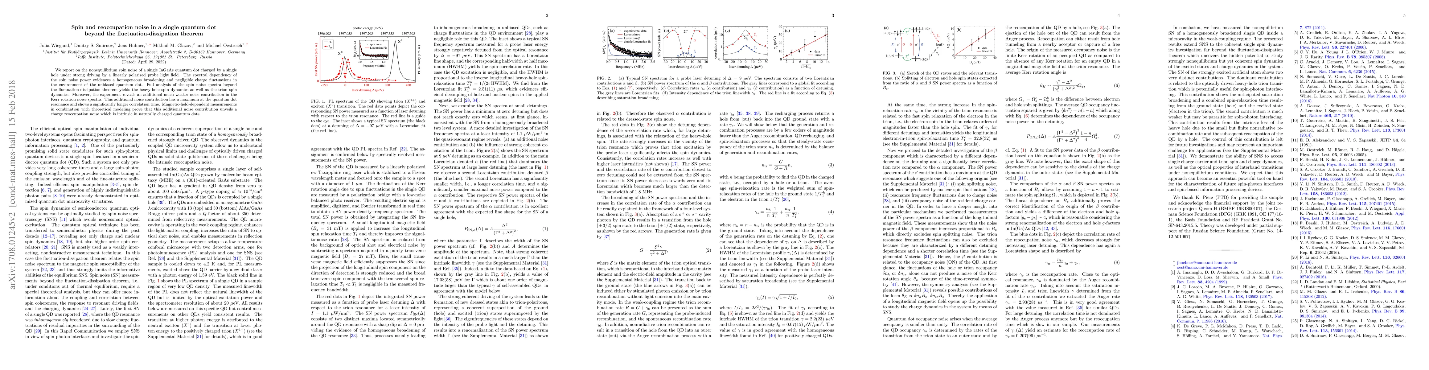 The paper investigates spin noise in a single InGaAs quantum dot with a single hole, under strong linearly polarized light. It reveals homogeneous broadening, negligible charge fluctuations, and detailed heavy-hole and trion spin dynamics beyond the fluctuation-dissipation theorem. An additional, weaker noise component linked to charge reoccupation is also discovered, proven by magnetic-field-dependent measurements and theoretical modeling.