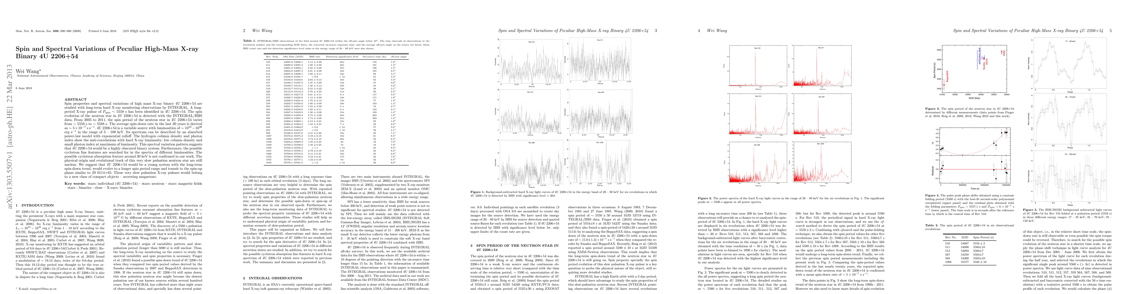 Spin properties and spectral variations of high mass X-ray binary 4U 2206+54 are studied with long-term hard X-ray monitoring observations by INTEGRAL. A long-period X-ray pulsar of P_spin\sim 5558 s has been identified in 4U 2206+54. The spin evolution of the neutron star in 4U 2206+54 is detected with the INTEGRAL/IBIS data. From 2005 to 2011, the spin period of the neutron star in 4U 2206+54 varies from \sim 5558 s to 5588 s. The average spin-down rate in the last 20 years is derived as \sim 5\times 10^{-7} s s^{-1}. 4U 2206+54 is a variable source with luminosities of \sim 10^{35} - 10^{36} erg s^{-1} in the range of 3 -- 100 keV. Its spectrum can be described by an absorbed power-law model with exponential rolloff. The hydrogen column density and photon index show the anti-correlations with hard X-ray luminosity: low column density and small photon index at maximum of luminosity. This spectral variation pattern suggests that 4U 2206+54 would be a highly obscured binary system. Furthermore, the possible cyclotron line features are searched for in the spectra of different luminosities. The possible cyclotron absorption feature around 30 keV is not confirmed in our work. The physical origin and evolutional track of this very slow pulsation neutron star are still unclear. We suggest that 4U 2206+54 would be a young system with the long-term spin-down trend, would evolve to a longer spin period range and transit to the spin-up phase similar to 2S 0114+65. These very slow pulsation X-ray pulsars would belong to a new class of compact objects -- accreting magnetars.