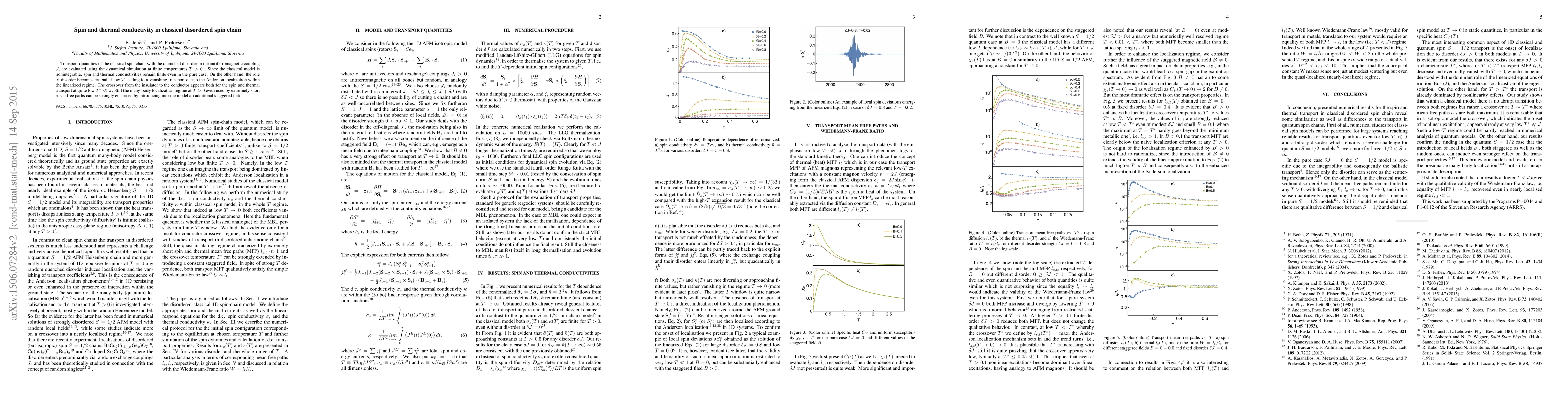 Transport quantities of the classical spin chain with the quenched disorder in the antiferromagnetic coupling $J_i$ are evaluated using the dynamical simulation at finite temperatures $T>0$ . Since the classical model is nonintegrable, spin and thermal conductivities remain finite even in the pure case. On the other hand, the role of disorder becomes crucial at low $T $ leading to a vanishing transport due to the Anderson localization within the linearized regime. The crossover from the insulator to the conductor appears both for the spin and thermal transport at quite low $T^* \ll J$. Still the many-body localization regime at $T>0$ evidenced by extremely short mean free paths can be strongly enhanced by introducing into the model an additional staggered field.