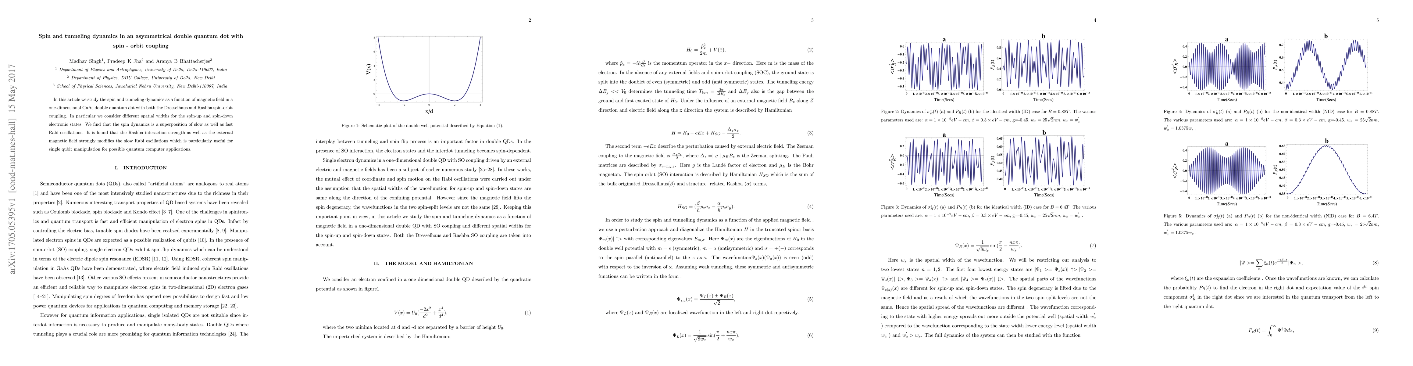In this article we study the spin and tunneling dynamics as a function of magnetic field in a one-dimensional GaAs double quantum dot with both the Dresselhaus and Rashba spin-orbit coupling. In particular we consider different spatial widths for the spin-up and spin-down electronic states. We find that the spin dynamics is a superposition of slow as well as fast Rabi oscillations. It is found that the Rashba interaction strength as well as the external magnetic field strongly modifies the slow Rabi oscillations which is particularly useful for single qubit manipulation for possible quantum computer applications.