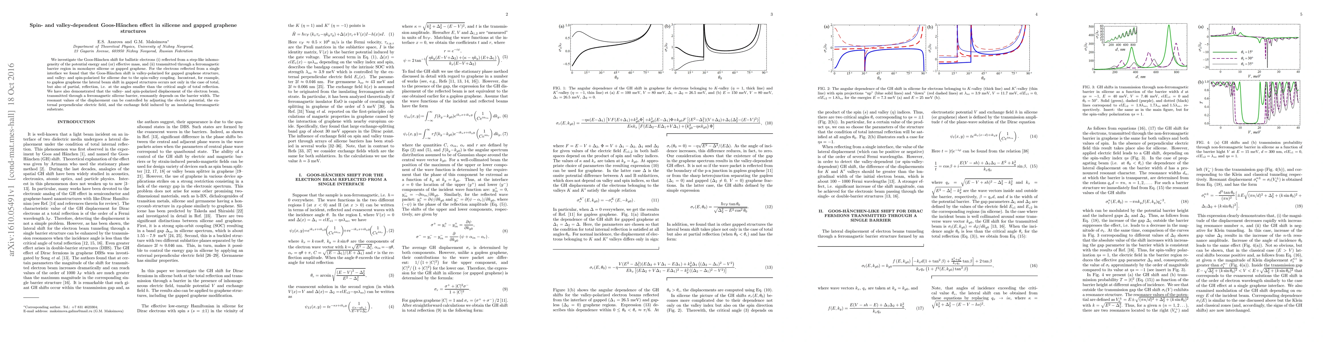 This paper investigates the Goos-Hänchen shift in reflected and transmitted electrons in monolayer silicene and gapped graphene, revealing valley- and spin-polarized shifts due to spin-valley coupling, and demonstrating resonant control over electron beam displacement through external fields and barrier width.