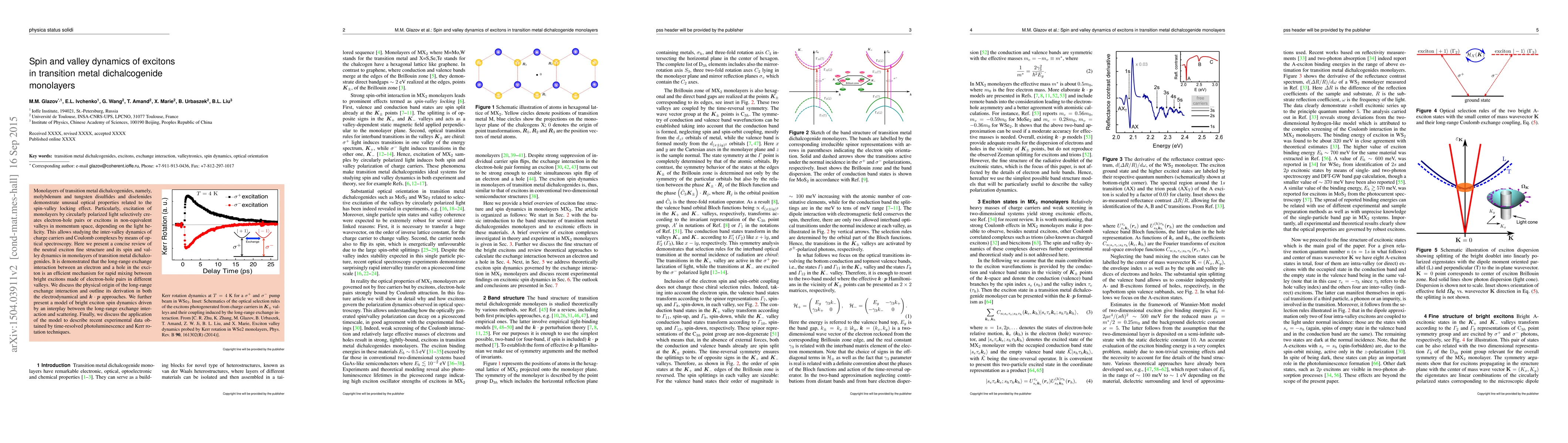 This paper reviews the spin and valley dynamics of excitons in transition metal dichalcogenide monolayers, focusing on the spin-valley locking effect. It highlights the efficient long-range exchange interaction mechanism for exciton dynamics and proposes a model to describe the interplay between this interaction and scattering, which is validated against recent experimental data.