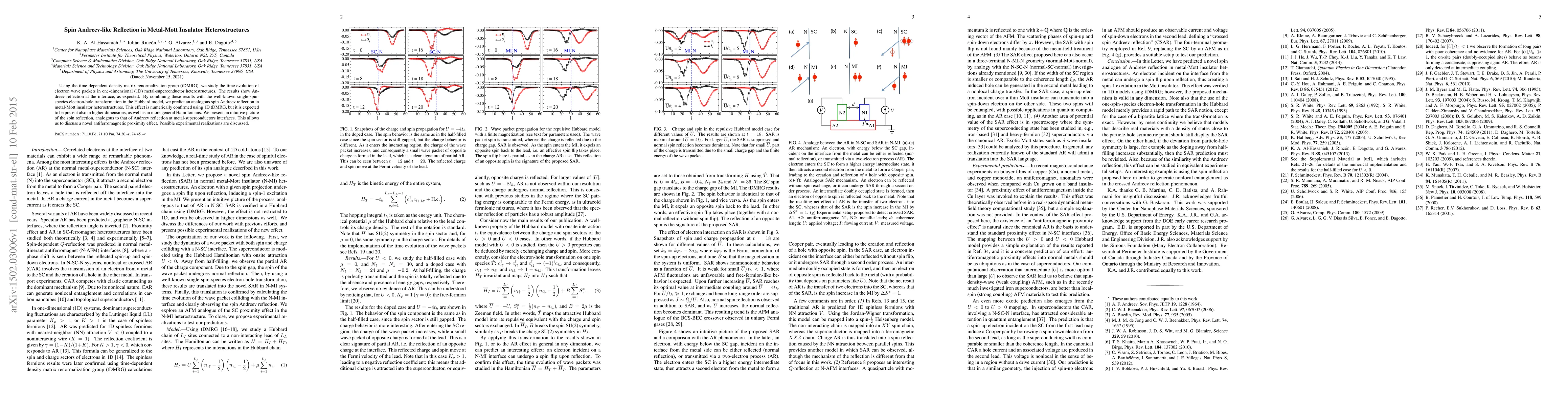 The study reveals spin Andreev-like reflection in metal-Mott insulator heterostructures using 1D tDMRG, extending the concept of Andreev reflection to spin systems. This effect predicts a novel antiferromagnetic proximity effect and potential experimental realizations.