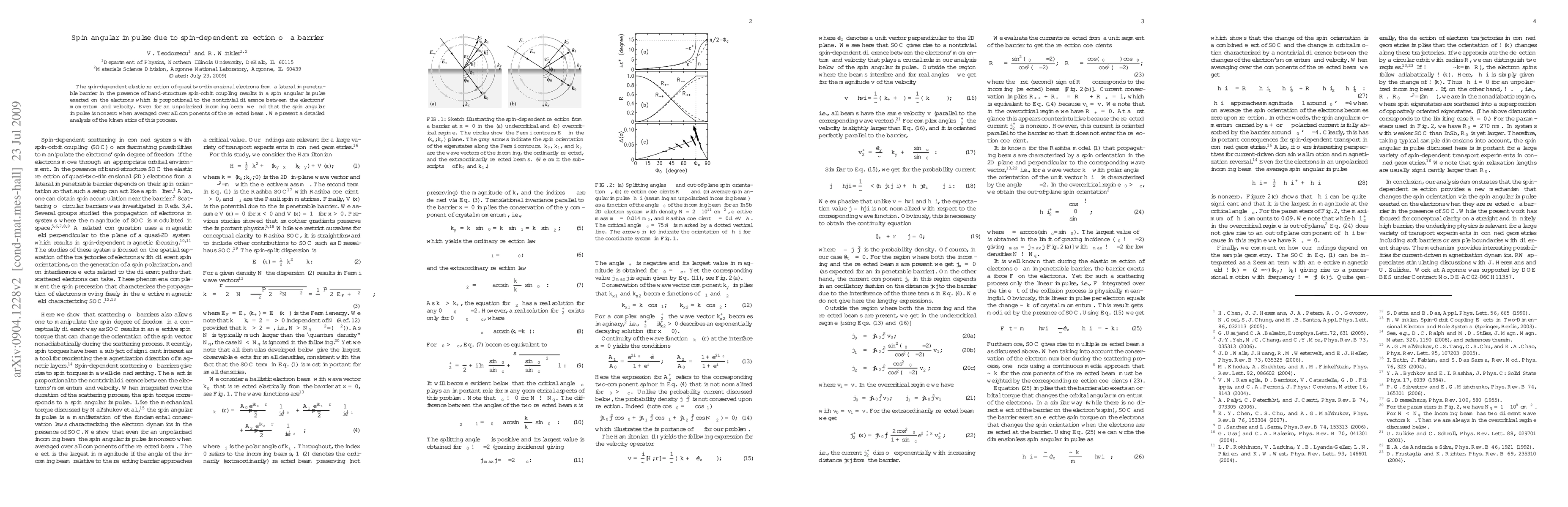 This paper investigates the spin-dependent elastic reflection of quasi two-dimensional electrons from a barrier, revealing a spin angular impulse proportional to the difference between momentum and velocity. Even with an unpolarized incoming beam, the reflected beam exhibits a nonzero averaged spin angular impulse due to band-structure spin-orbit coupling.