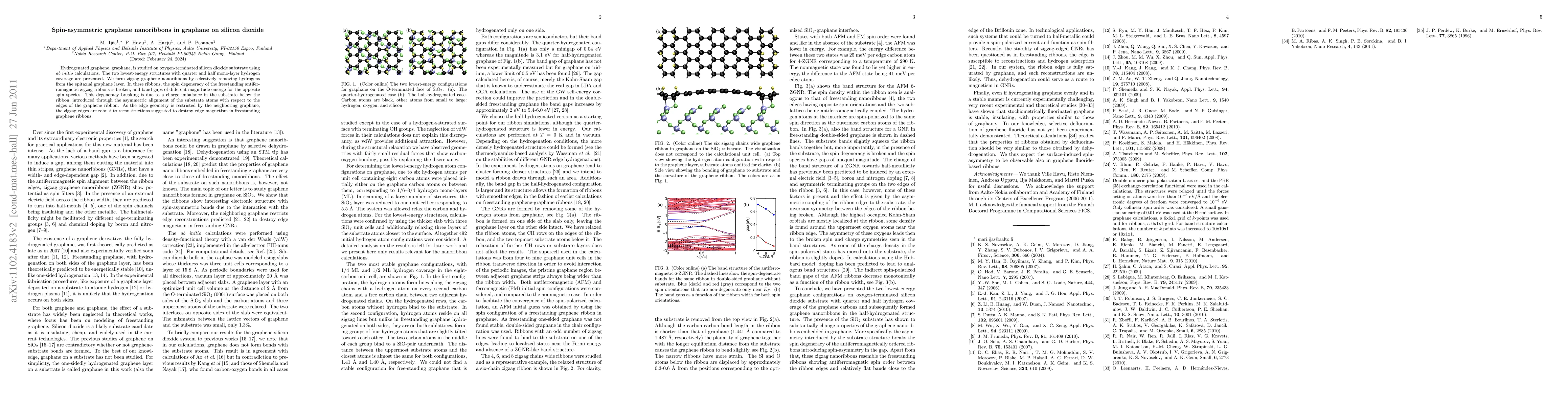 This research investigates hydrogenated graphene, or graphane, on an oxygen-terminated silicon dioxide substrate, revealing stable spin-asymmetric zigzag nanoribbons. The broken spin degeneracy and differing band gaps for opposite spin species result from a charge imbalance induced by the substrate's asymmetric interaction with the ribbon edges.