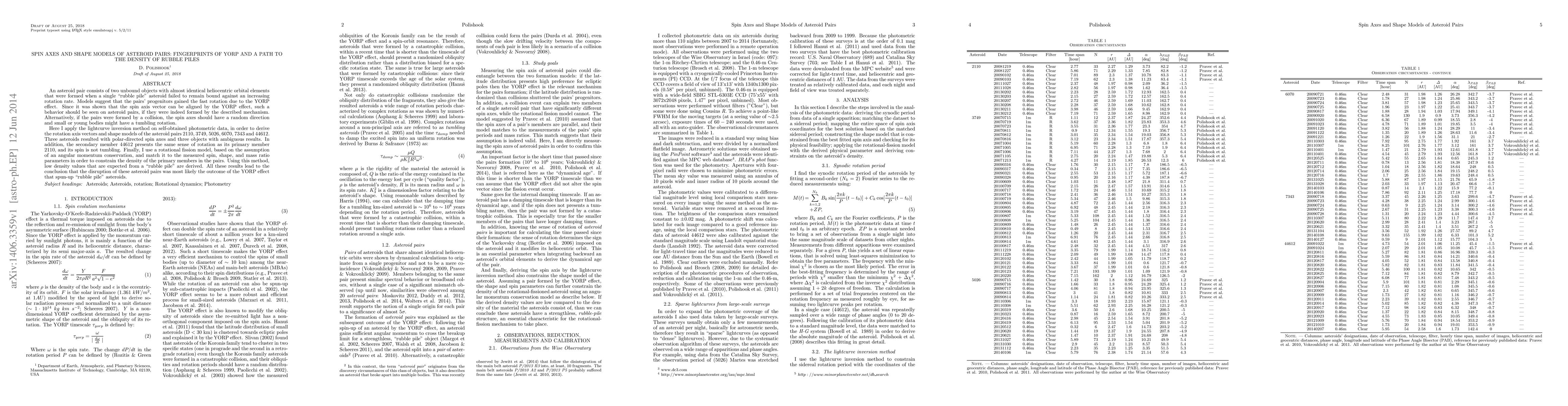 This study finds that asteroid pairs formed through a process called YORP effect have aligned spin axes, suggesting they were spun-up from single rubble pile asteroids. The research reveals low density values in the primary members of these pairs.