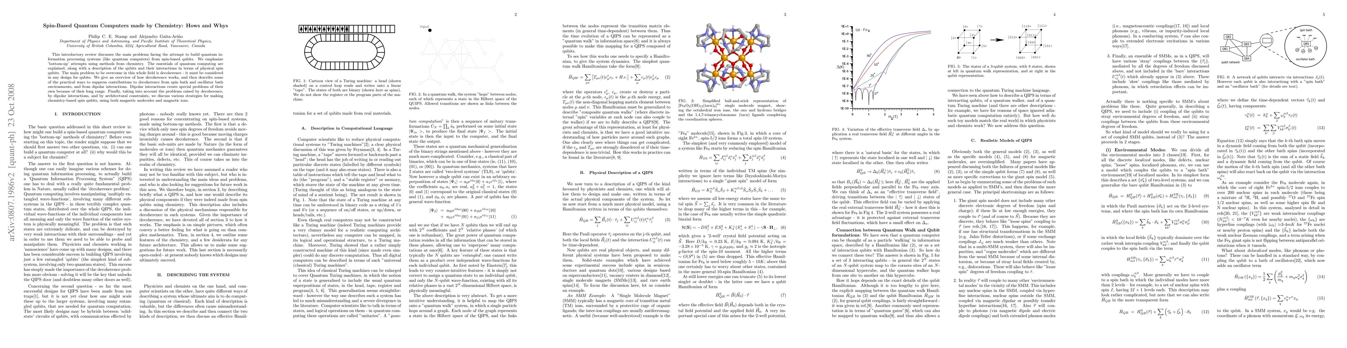 This introductory review discusses the main problems facing the attempt to build quantum information processing systems (like quantum computers) from spin-based qubits. We emphasize 'bottom-up' attempts using methods from chemistry. The essentials of quantum computing are explained, along with a description of the qubits and their interactions in terms of physical spin qubits. The main problem to be overcome is decoherence - how this works is described, along with ways to suppress contributions from spin bath and oscillator bath environments, and from dipolar interactions. Finally we discuss various strategies for making chemistry-based spin qubits, using both magnetic molecules and magnetic ions.