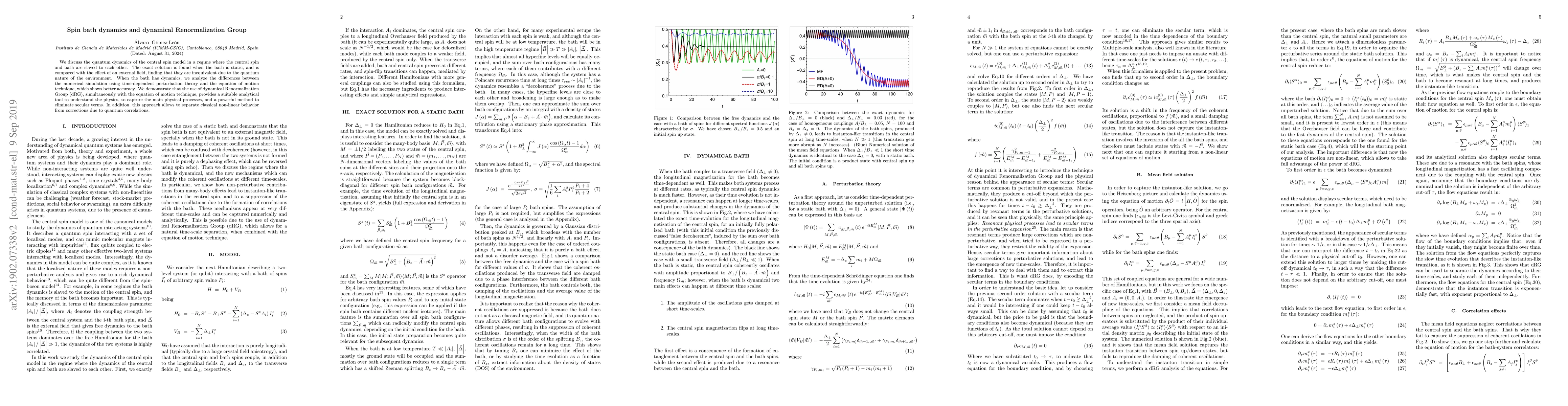 Abstract We discuss the quantum dynamics of the central spin model in a regime where the central spin and bath are slaved to each other. The exact solution is found when the bath is static, and is compared with the effect of an external field, finding that they are inequivalent due to the quantum nature of the environment. When the bath has dynamics, we analyze the differences between the numerical simulation using time-dependent perturbation theory and the equation of motion technique, which shows better accuracy. We demonstrate that the use of dynamical Renormalization Group (dRG), simultaneously with the equation of motion technique, provides a suitable analytical tool to understand the physics, to capture the main physical processes, and a powerful method to eliminate secular terms. In addition, this approach allows to separate classical non-linear behavior from corrections due to quantum correlations.