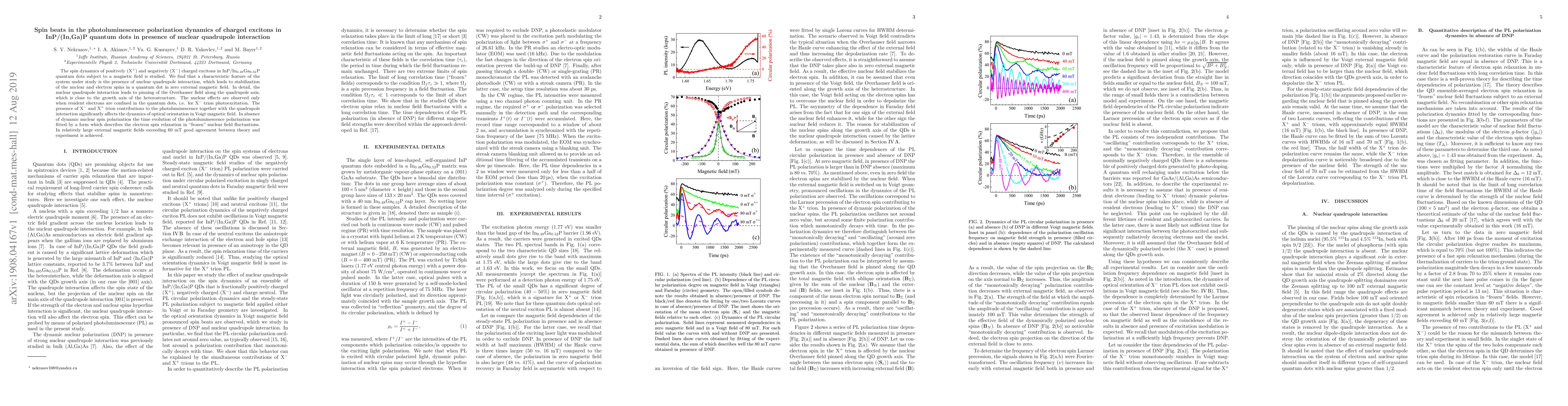 This paper investigates the spin dynamics of charged excitons in InP/In$_{0.48}$Ga$_{0.52}$P quantum dots under magnetic fields, highlighting the influence of nuclear quadrupole interaction on spin stabilization and photoluminescence polarization dynamics. The study reveals that nuclear effects significantly influence optical orientation and electron spin relaxation in the presence of both positively and negatively charged excitons.