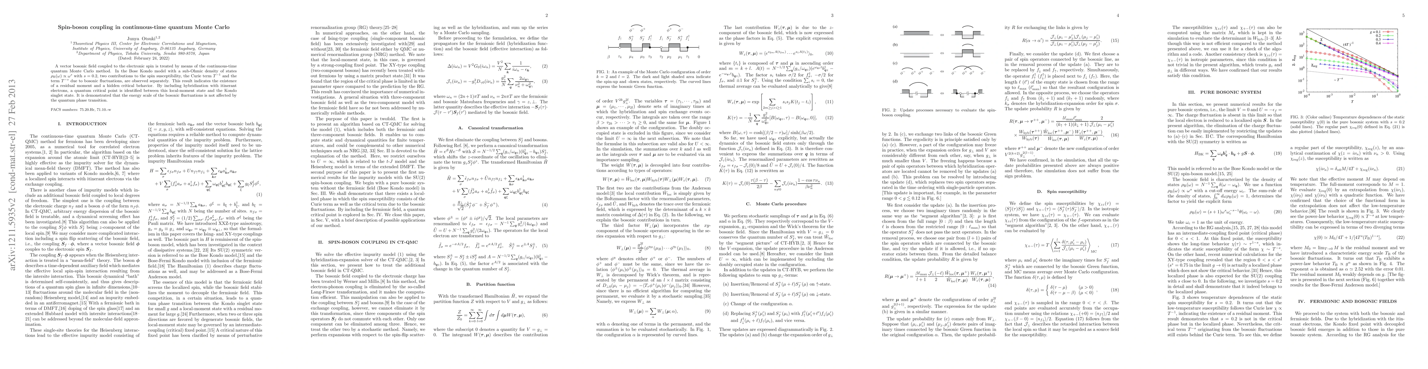 A vector bosonic field coupled to the electronic spin is treated by means of the continuous-time quantum Monte Carlo method. In the Bose Kondo model with a sub-Ohmic density of states $\rho_{B}(\omega) \propto \omega^{s}$ with s=0.2, two contributions to the spin susceptibility, the Curie term T^{-1} and the term T^{-s} due to bosonic fluctuations, are observed separately. This result indicates the existence of a residual moment and a hidden critical behavior. By including hybridization with itinerant electrons, a quantum critical point is identified between this local-moment state and the Kondo singlet state. It is demonstrated that the energy scale of the bosonic fluctuations is not affected by the quantum phase transition.