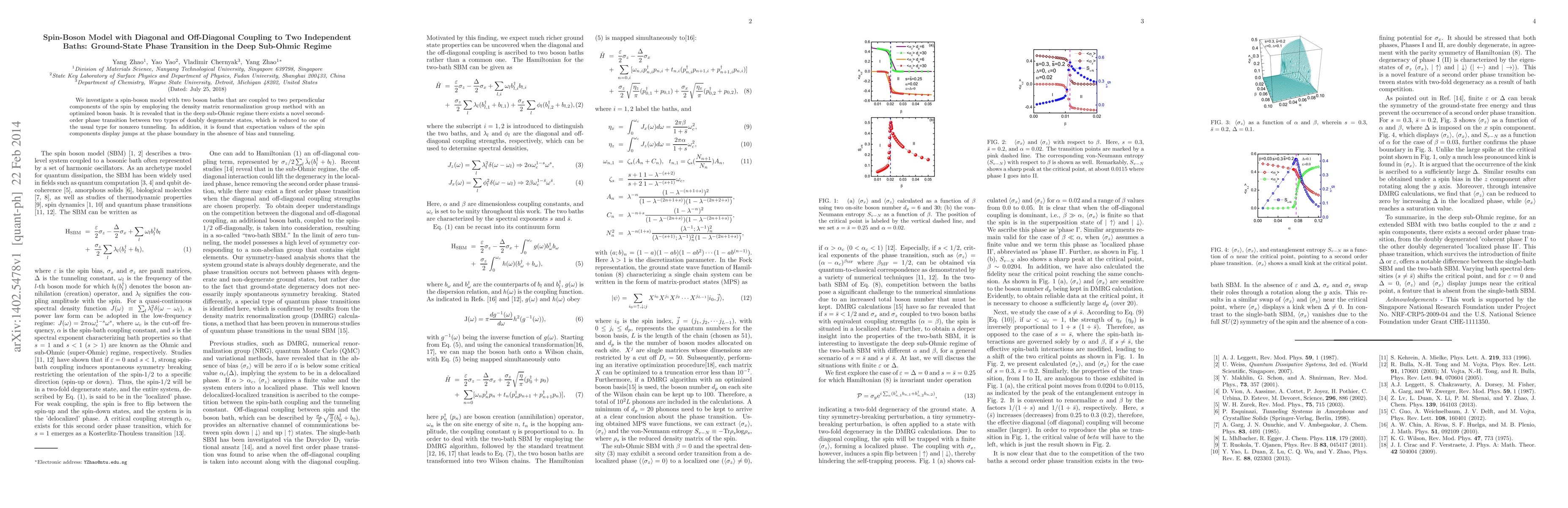 This paper explores a spin-boson model with two independent baths, revealing a novel second-order phase transition in the deep sub-Ohmic regime. The transition occurs between doubly degenerate states, with spin component expectation values showing jumps at the phase boundary without bias or tunneling.