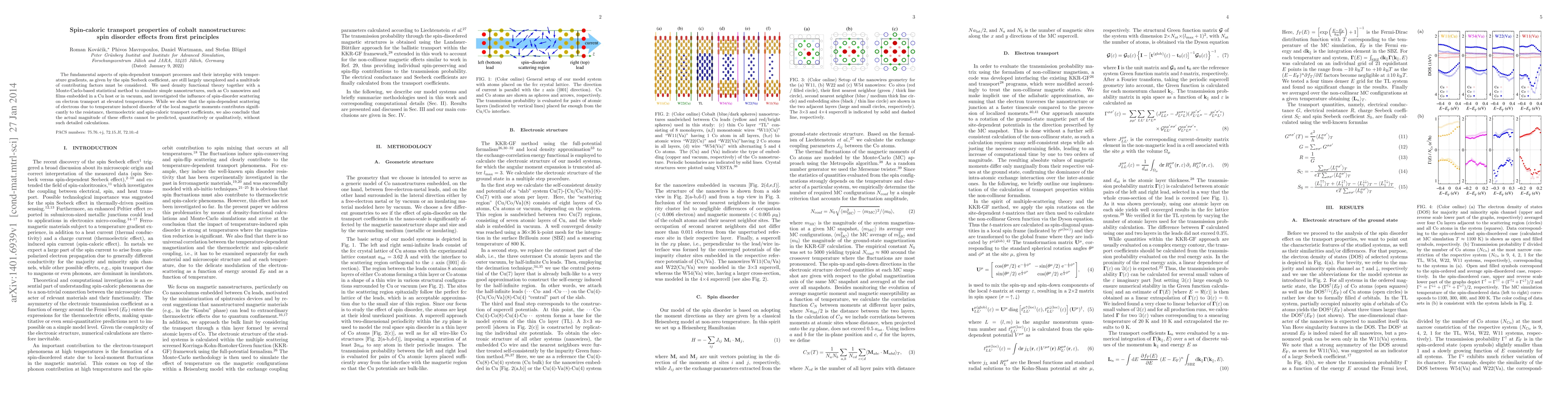 The fundamental aspects of spin-dependent transport processes and their interplay with temperature gradients, as given by the spin Seebeck coefficient, are still largely unexplored and a multitude of contributing factors must be considered. We used density functional theory together with a Monte-Carlo-based statistical method to simulate simple nanostructures, such as Co nanowires and films embedded in a Cu host or in vacuum, and investigated the influence of spin-disorder scattering on electron transport at elevated temperatures. While we show that the spin-dependent scattering of electrons due to temperature induced disorder of the local magnetic moments contributes significantly to the resistance, thermoelectric and spin-caloric transport coefficients, we also conclude that the actual magnitude of these effects cannot be predicted, quantitatively or qualitatively, without such detailed calculations.