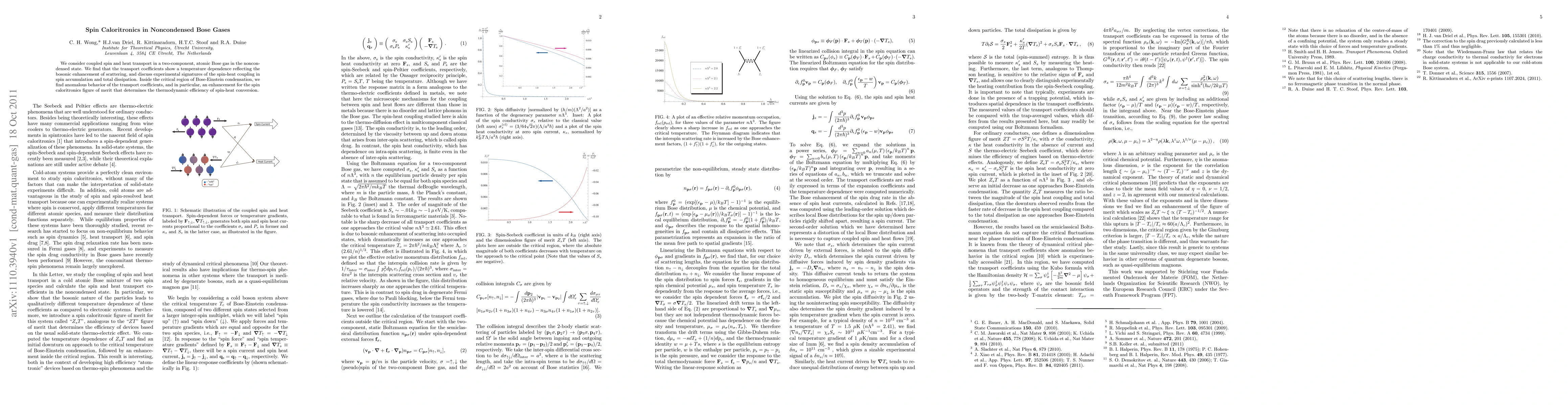 This paper explores spin and heat transport in noncondensed Bose gases, revealing temperature-dependent transport coefficients due to bosonic enhancement. It highlights experimental signatures of spin-heat coupling and notes an anomalous enhancement in the spin caloritronics figure of merit near the Bose-Einstein condensation critical region.