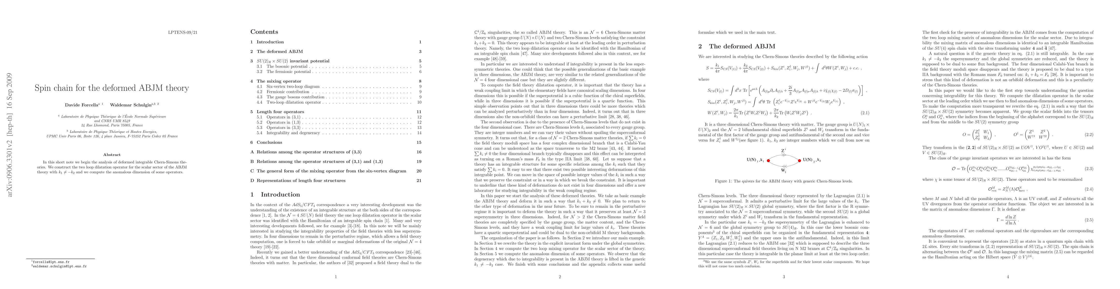 In this short note we begin the analysis of deformed integrable Chern-Simons theories. We construct the two loop dilatation operator for the scalar sector of the ABJM theory with $k1 \neq -k2$ and we compute the anomalous dimension of some operators.