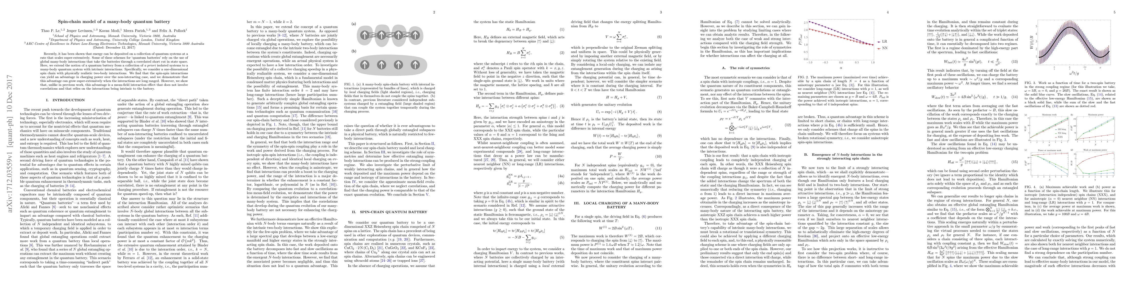 Recently, it has been shown that energy can be deposited on a collection of quantum systems at a rate that scales super-extensively. Some of these schemes for `quantum batteries' rely on the use of global many-body interactions that take the batteries through a correlated short cut in state space. Here, we extend the notion of a quantum battery from a collection of a priori isolated systems to a many-body quantum system with intrinsic interactions. Specifically, we consider a one-dimensional spin chain with physically realistic two-body interactions. We find that the spin-spin interactions can yield an advantage in charging power over the non-interacting case, and we demonstrate that this advantage can grow super-extensively when the interactions are long ranged. However, we show that, unlike in previous work, this advantage is a mean-field interaction effect that does not involve correlations and that relies on the interactions being intrinsic to the battery.