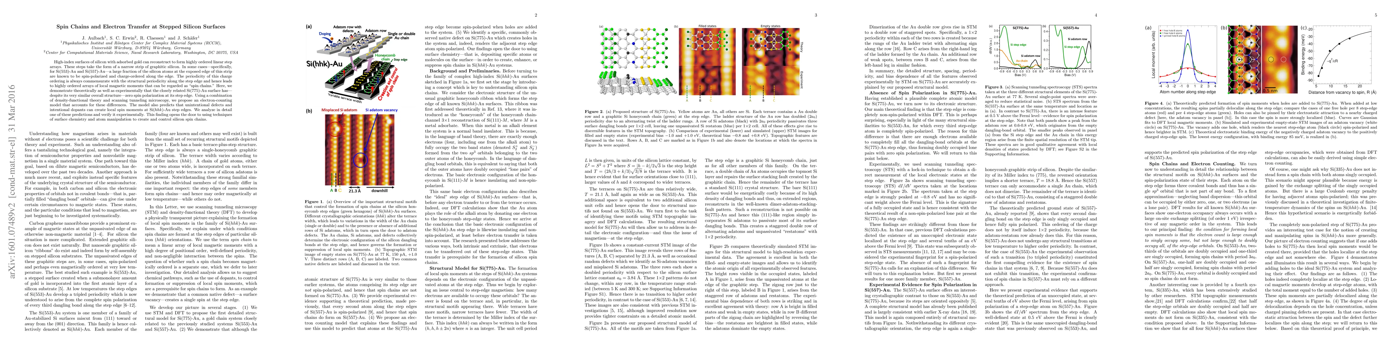 This paper investigates spin chains and electron transfer at stepped silicon surfaces with adsorbed gold, revealing that Si(775)-Au lacks spin polarization despite similar structural features. It proposes an electron-counting model to explain these differences and suggests that defects and dopants can induce local spin moments, a prediction experimentally verified.