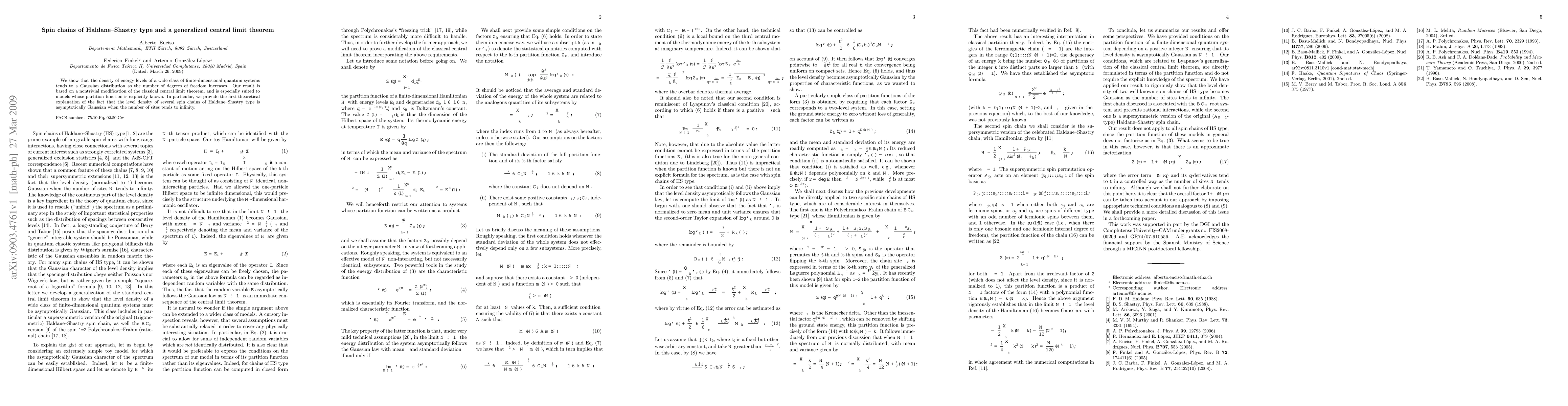 We show that the density of energy levels of a wide class of finite-dimensional quantum systems tends to a Gaussian distribution as the number of degrees of freedom increases. Our result is based on a nontrivial modification of the classical central limit theorem, and is especially suited to models whose partition function is explicitly known. In particular, we provide the first theoretical explanation of the fact that the level density of several spin chains of Haldane-Shastry type is asymptotically Gaussian when the number of sites tends to infinity.