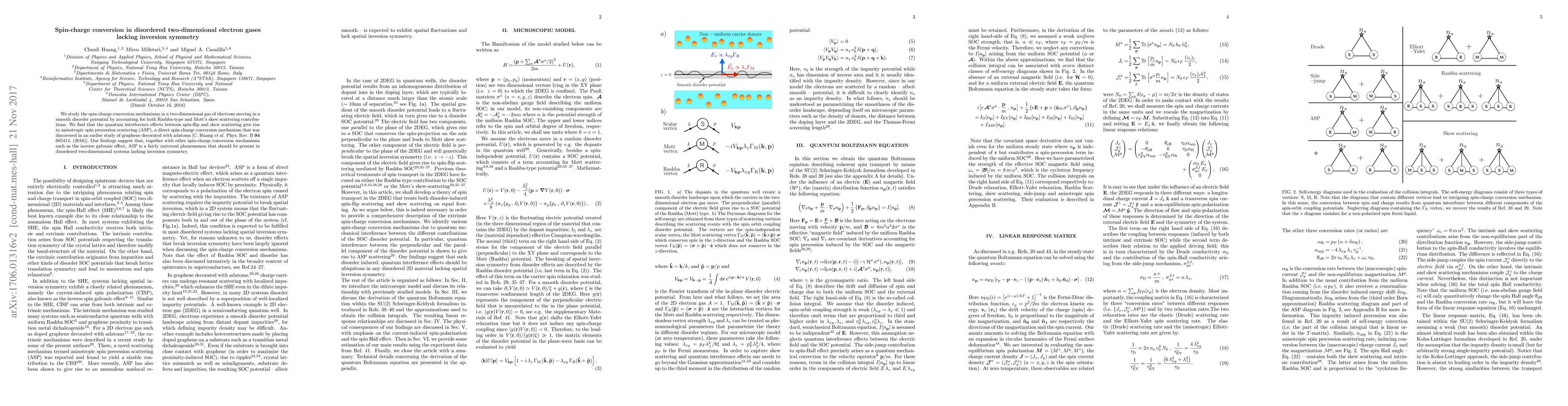 Researchers studied spin-charge conversion in disordered 2D electron gases, discovering anisotropic spin precession scattering, a universal phenomenon that should appear in systems lacking inversion symmetry.