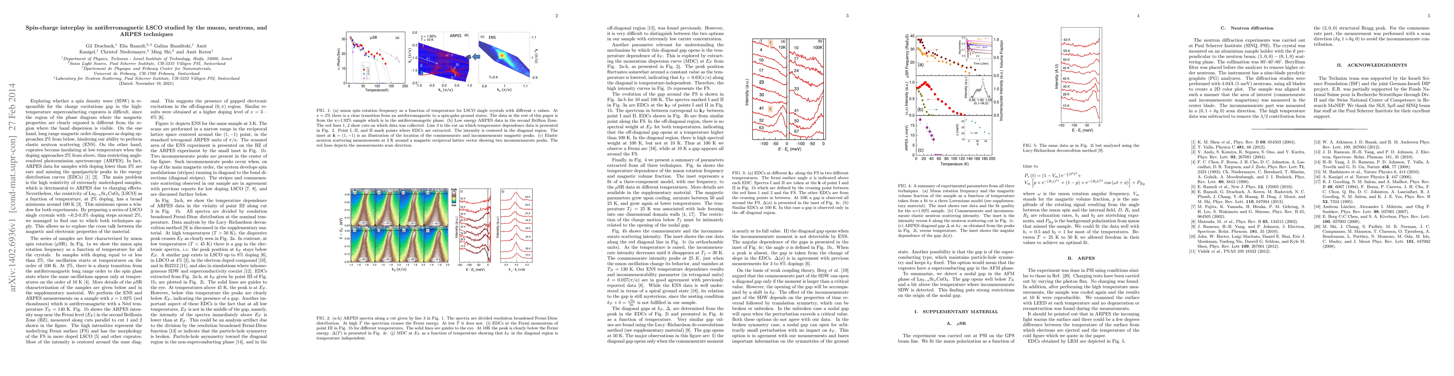 Exploring whether a spin density wave (SDW) is responsible for the charge excitations gap in the high-temperature superconducting cuprates is difficult, since the region of the phase diagram where the magnetic properties are clearly exposed is different from the region where the band dispersion is visible. On the one hand, long range magnetic order disappears as doping approaches 2% from below, hindering our ability to perform elastic neutron scattering (ENS). On the other hand, cuprates become insulating at low temperature when the doping approaches 2% from above, thus restricting angle-resolved photoemission spectroscopy (ARPES). In fact, ARPES data for samples with doping lower than 3% are rare and missing the quasiparticle peaks in the energy distribution curves (EDCs). The main problem is the high resistivity of extremely underdoped samples, which is detrimental to ARPES due to charging effects. Nevertheless, the resistivity of La$_{2-x}$Sr$_{x}$CuO$_{4}$ as a function of temperature, at 2% doping, has a broad minimum around 100K. This minimum opens a window for both experiments. By preparing a series of LSCO single crystals with $\sim $0.2-0.3% doping steps around 2%, we managed to find one to which both techniques apply. This allows us to explore the cross talk between the magnetic and electronic properties of the material.