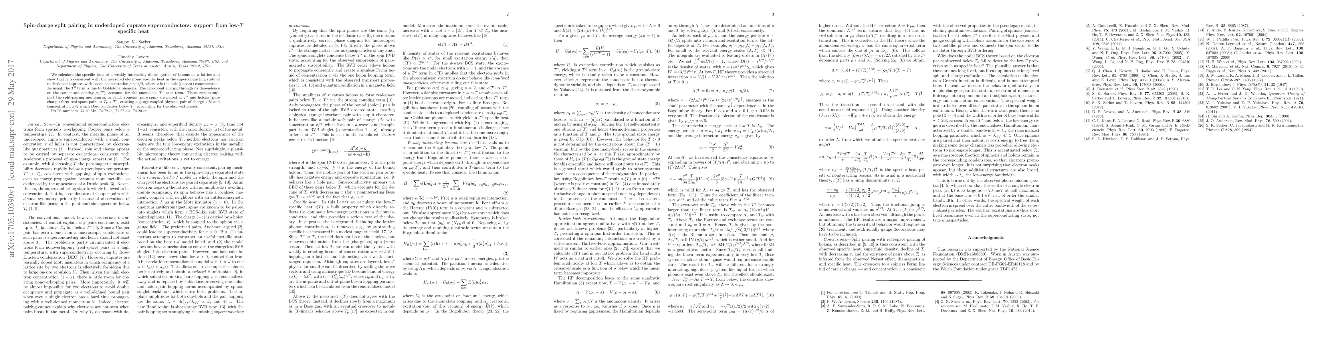 This paper demonstrates that the specific heat of a dilute bosonic system on a lattice matches the electronic specific heat in underdoped cuprate superconductors, supporting the spin-charge split pairing mechanism. The $T$-linear term in the specific heat is attributed to the zero-point energy's dependence on the condensate density, consistent with the observed superconducting phases.