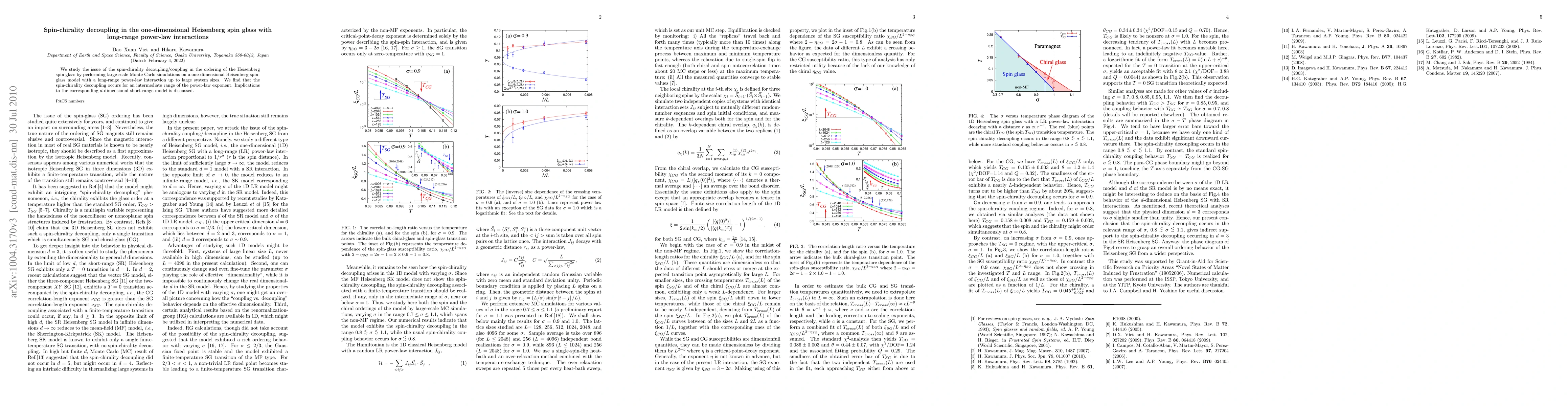 This paper investigates spin-chirality decoupling in a one-dimensional Heisenberg spin glass with long-range power-law interactions, revealing that decoupling occurs for an intermediate range of the power-law exponent through extensive Monte Carlo simulations. The findings have implications for understanding similar phenomena in higher-dimensional short-range models.