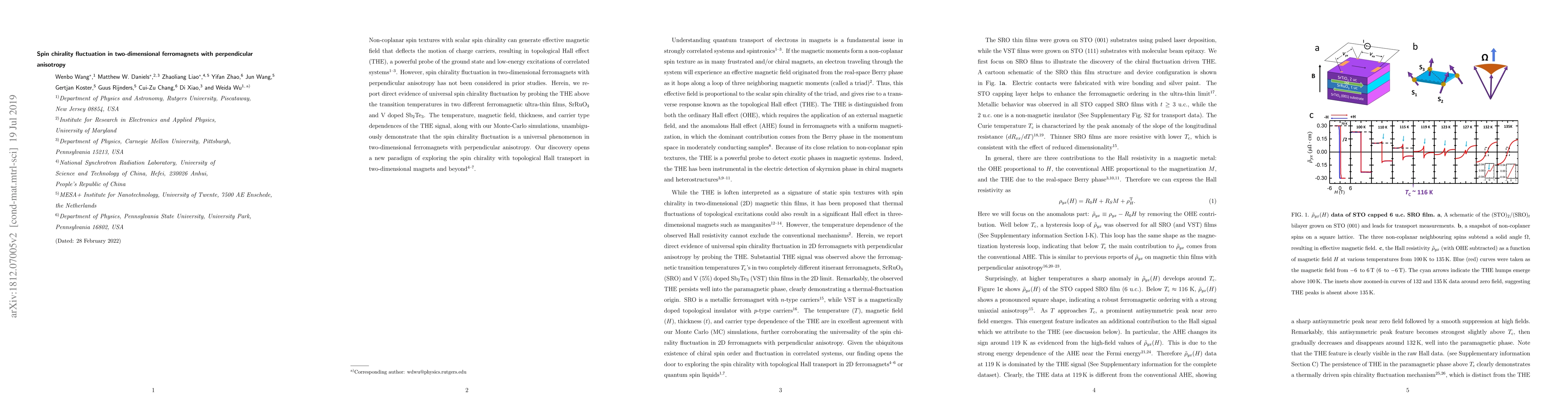 This paper reports the first evidence of universal spin chirality fluctuation in two-dimensional ferromagnets with perpendicular anisotropy, demonstrated through the topological Hall effect in SrRuO$_3$ and V-doped Sb$_2$Te$_3$ ultra-thin films. The findings reveal that spin chirality fluctuations are a universal phenomenon in two-dimensional Ising ferromagnets, offering a new approach to explore spin chirality via topological Hall transport.