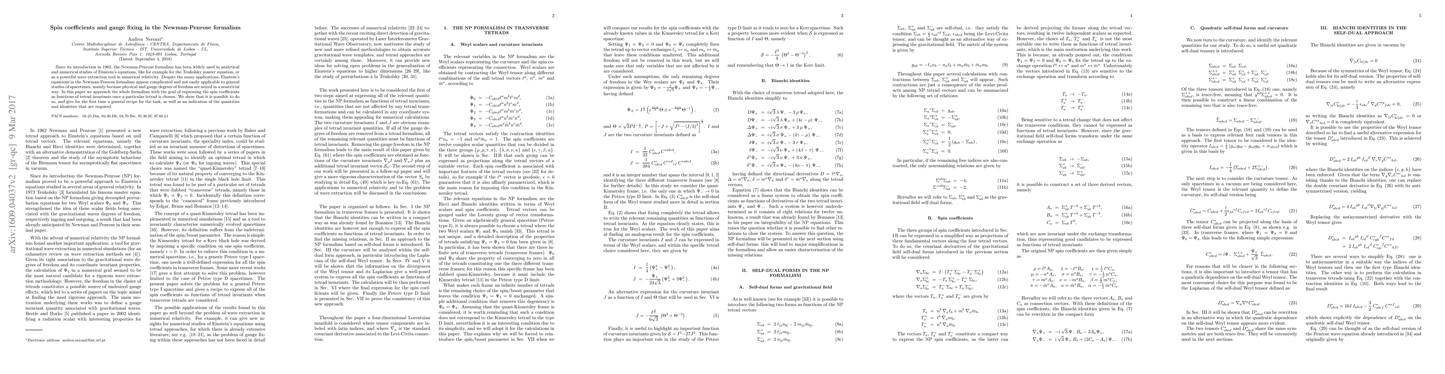 This paper explores the Newman-Penrose formalism, aiming to express spin coefficients as functions of tetrad invariants for a chosen tetrad. It provides a general method and necessary quantities to achieve this, addressing the complexity and mixed gauge-physical degrees of freedom in the formalism.