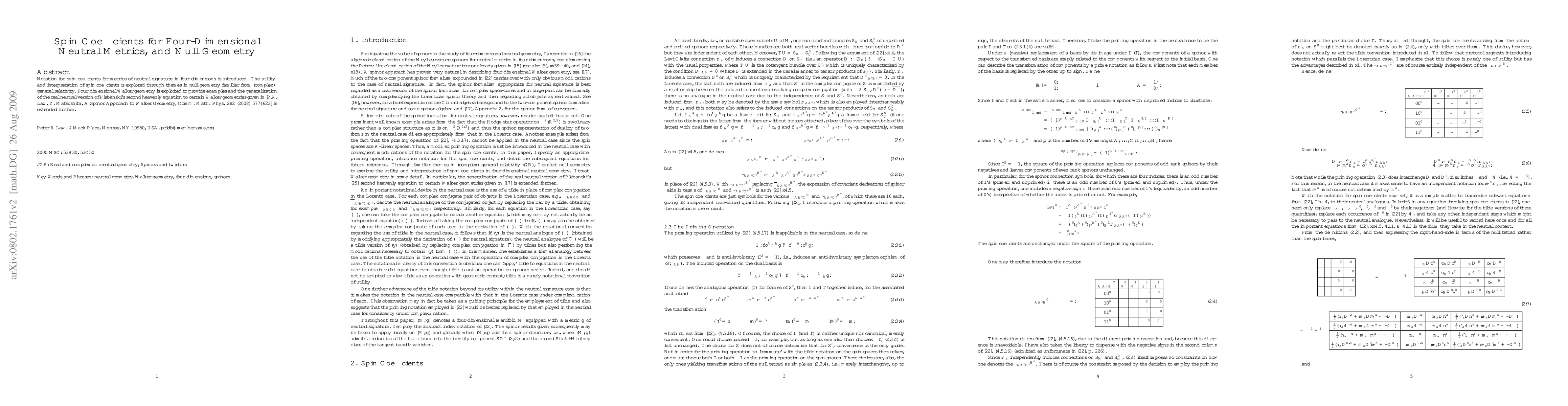 The paper presents a systematic approach to defining and computing spin coefficients for neutral metrics in four dimensions, providing a comprehensive analysis of their properties and behavior in null geometries.