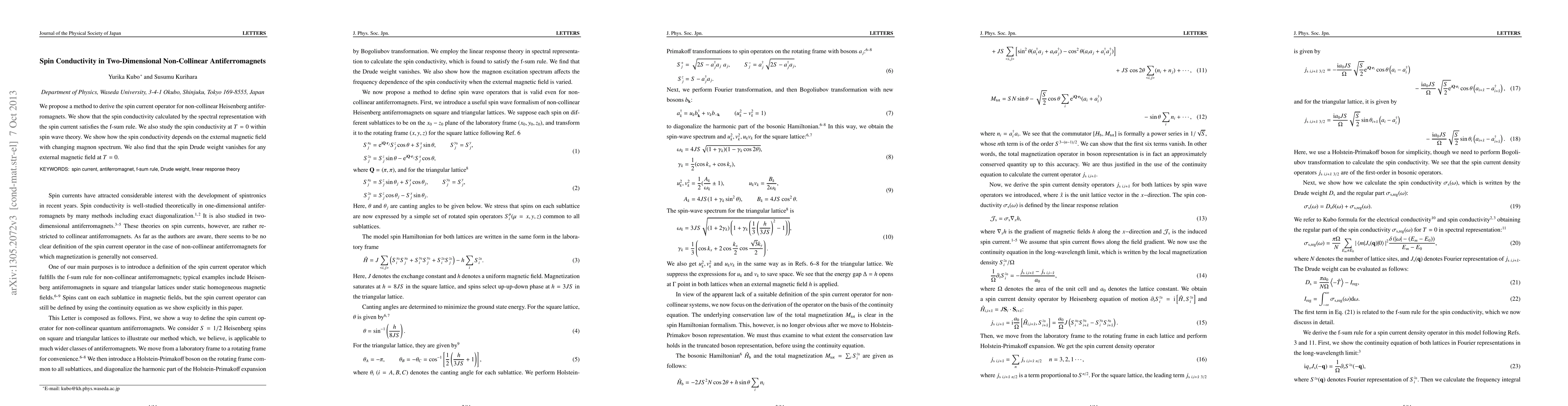 This paper proposes a method to derive the spin current operator for non-collinear Heisenberg antiferromagnets and demonstrates that the spin conductivity adheres to the f-sum rule. It further investigates spin conductivity at T=0 using spin wave theory, revealing its dependence on the external magnetic field and the vanishing spin Drude weight under any external magnetic field.