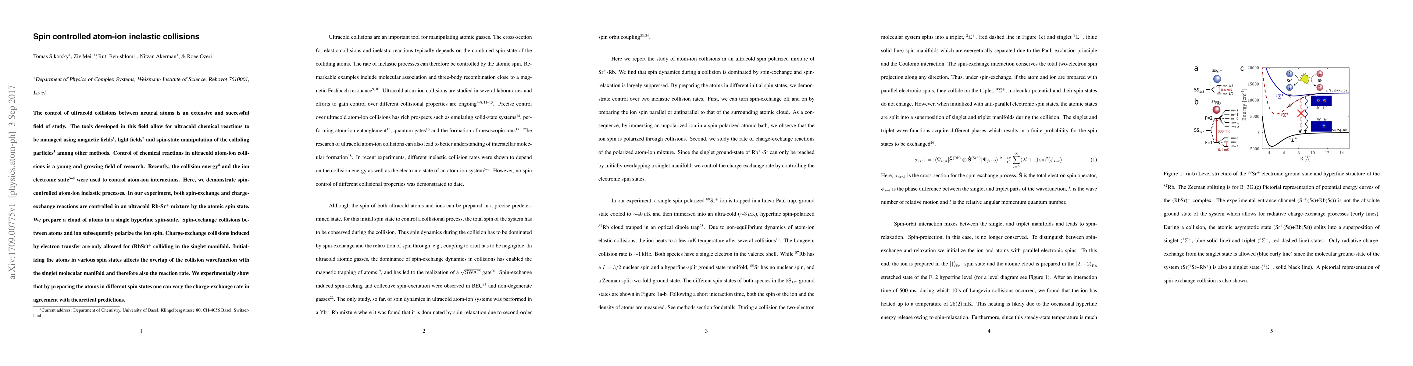 The paper presents a novel method for controlling atom-ion inelastic collisions using spin state manipulation, demonstrating the ability to vary charge-exchange rates based on initial atomic spin states.