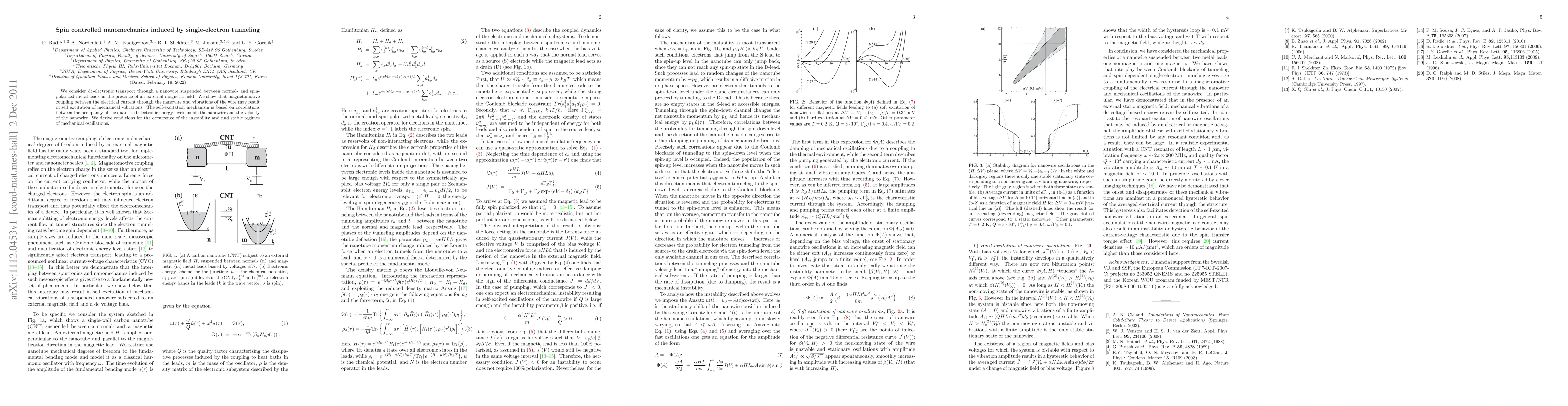 We consider dc-electronic transport through a nanowire suspended between normal- and spin-polarized metal leads in the presence of an external magnetic field. We show that magnetomotive coupling between the electrical current through the nanowire and vibrations of the wire may result in self excitation of mechanical vibrations. The self-excitation mechanism is based on correlations between the occupancy of the quantized electronic energy levels inside the nanowire and the velocity of the nanowire. We derive conditions for the occurrence of the instability and find stable regimes of mechanical oscillations.