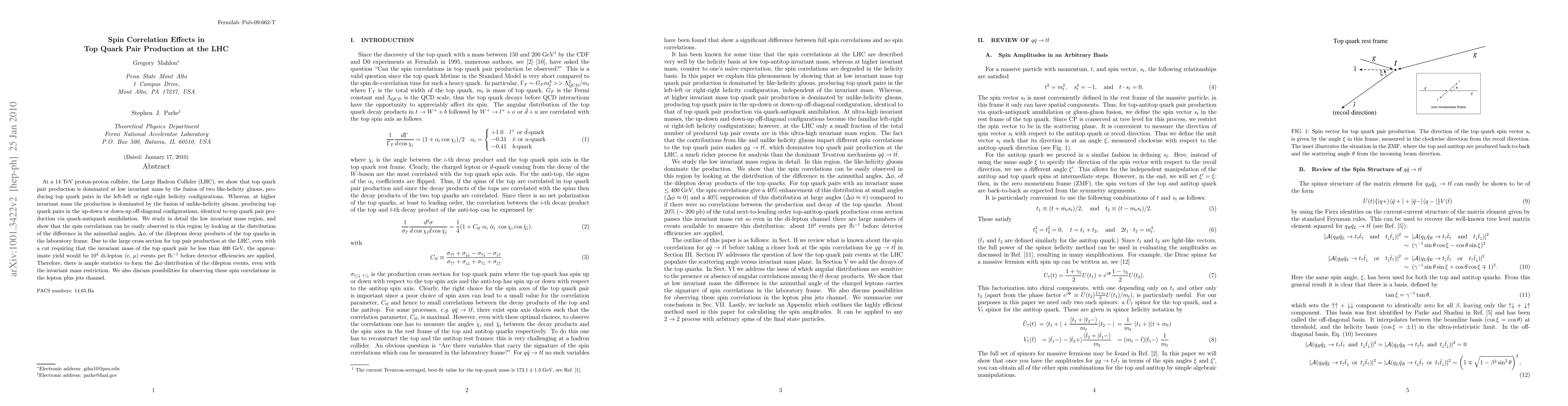This paper investigates spin correlation effects in top quark pair production at the LHC, showing that low invariant mass events are dominated by like-helicity gluon fusion, while higher invariant mass events are dominated by unlike-helicity gluon fusion. The study highlights the potential to observe these correlations via the Delta-phi distribution of dilepton decay products, with significant statistical yield even under mass restrictions.