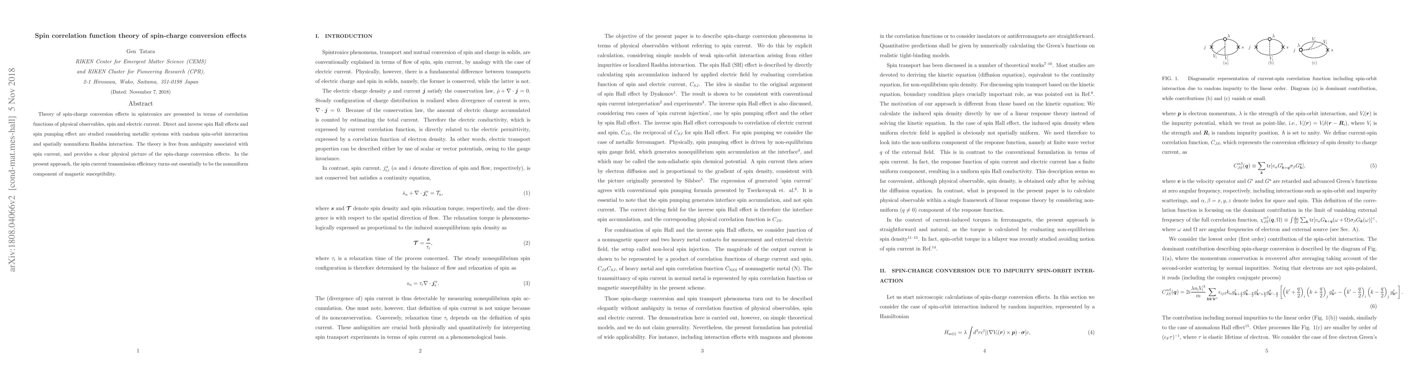 This paper presents a correlation function theory for spin-charge conversion in spintronics, focusing on metallic systems with spin-orbit interactions. It provides a clear physical framework for understanding effects like the spin Hall and spin pumping phenomena, free from ambiguities related to spin current.