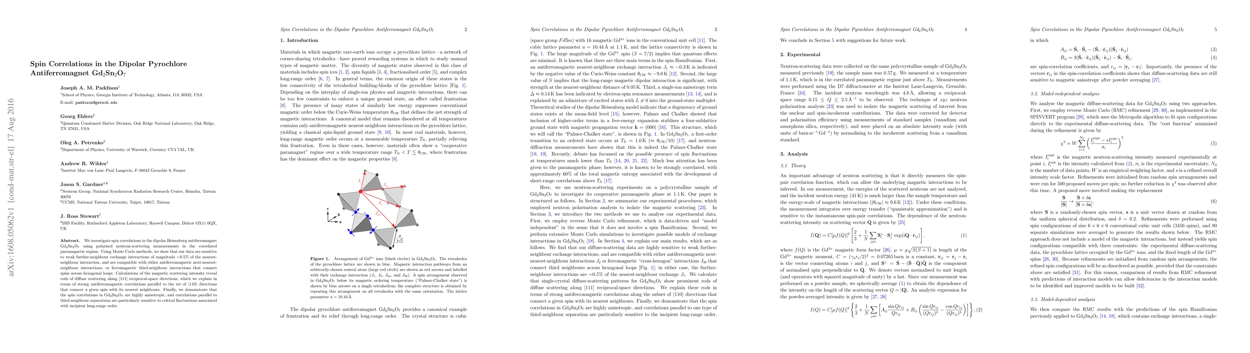 This study uses polarized neutron-scattering and Monte Carlo methods to explore spin correlations in Gd2Sn2O7, revealing weak further-neighbour exchange interactions and anisotropic spin correlations, particularly sensitive to critical fluctuations in the correlated paramagnetic regime.