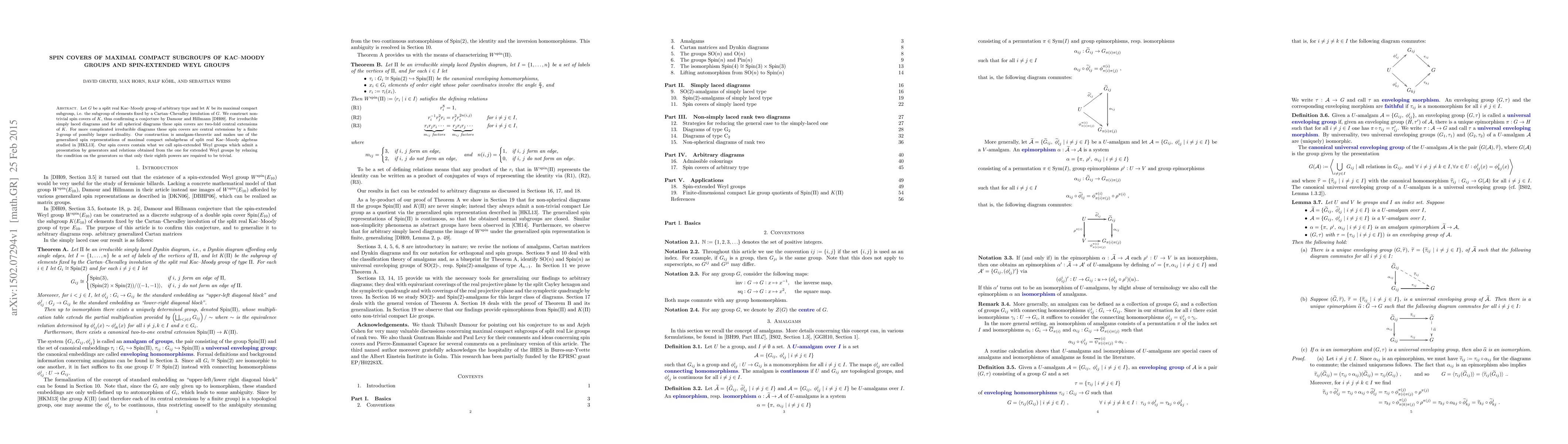 Let G be a split real Kac-Moody group of arbitrary type and let K be its maximal compact subgroup, i.e. the subgroup of elements fixed by a Cartan-Chevalley involution of G. We construct non-trivial spin covers of K, thus confirming a conjecture by Damour and Hillmann (arXiv:0906.3116). For irreducible simply laced diagrams and for all spherical diagrams these spin covers are two-fold central extensions of K. For more complicated irreducible diagrams these spin covers are central extensions by a finite 2-group of possibly larger cardinality. Our construction is amalgam-theoretic and makes use of the generalized spin representations of maximal compact subalgebras of split real Kac-Moody algebras studied in arXiv:1110.5576. Our spin covers contain what we call spin-extended Weyl groups which admit a presentation by generators and relations obtained from the one for extended Weyl groups by relaxing the condition on the generators so that only their eighth powers are required to be trivial.