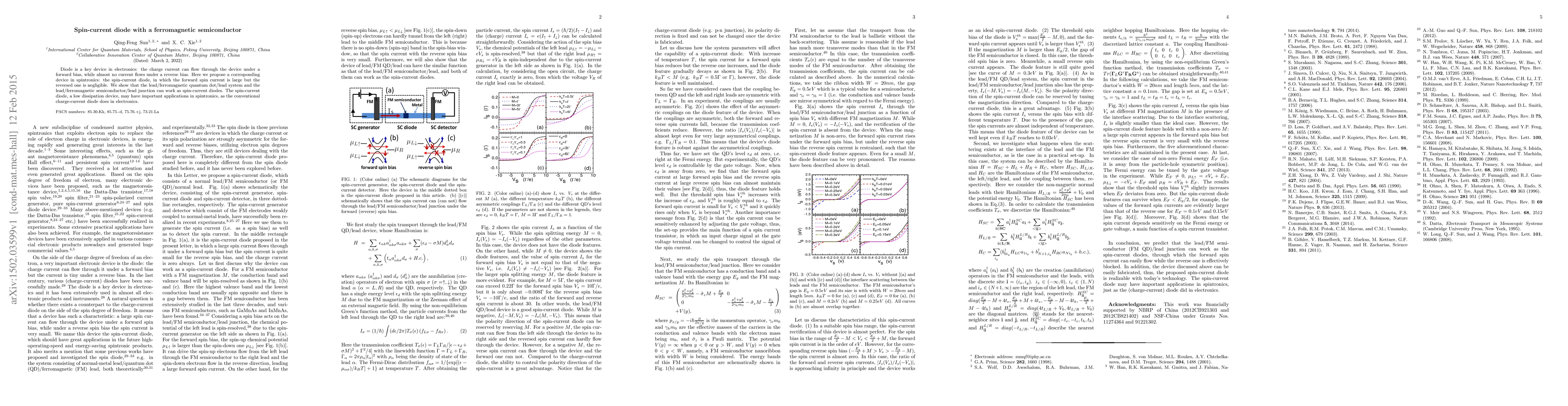 This paper proposes a spin-current diode using ferromagnetic semiconductors and quantum dots that allows significant forward spin current while blocking reverse spin current, potentially revolutionizing spintronics with low-dissipation devices.
