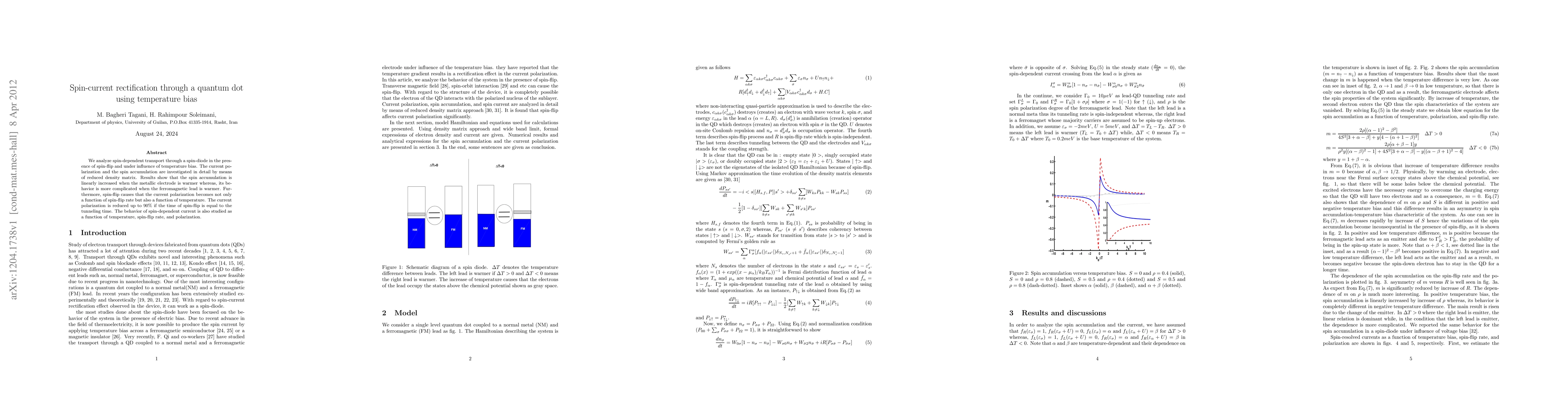 Researchers investigated spin-current rectification through a quantum dot under temperature bias, finding that warmer metal electrodes increase spin accumulation, while warmer ferromagnetic leads have more complicated behavior. Spin-flip rates also affect current polarization, with significant reductions up to 90% in optimal conditions.