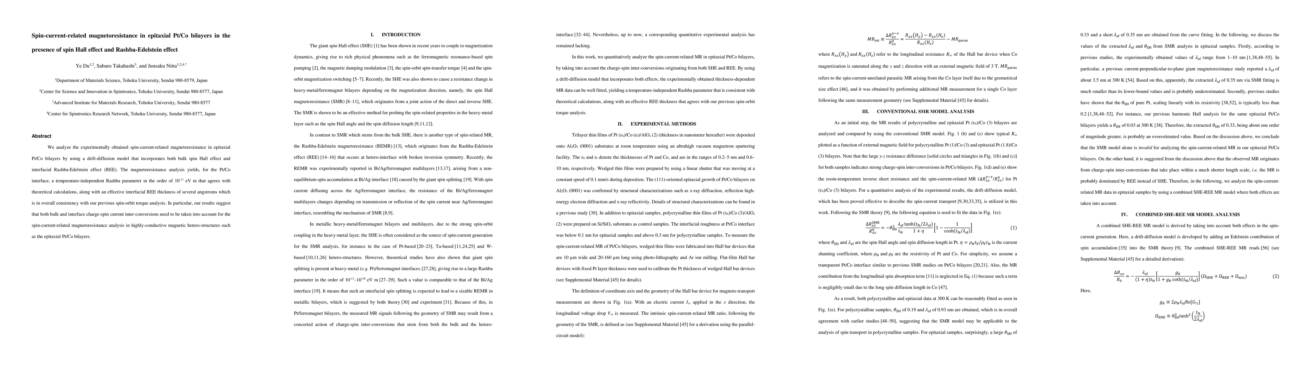 The study analyzes spin-current-related magnetoresistance in Pt/Co bilayers, revealing a temperature-independent Rashba parameter and effective interfacial Rashba-Edelstein effect thickness, suggesting both bulk and interface contributions are crucial for accurate analysis.